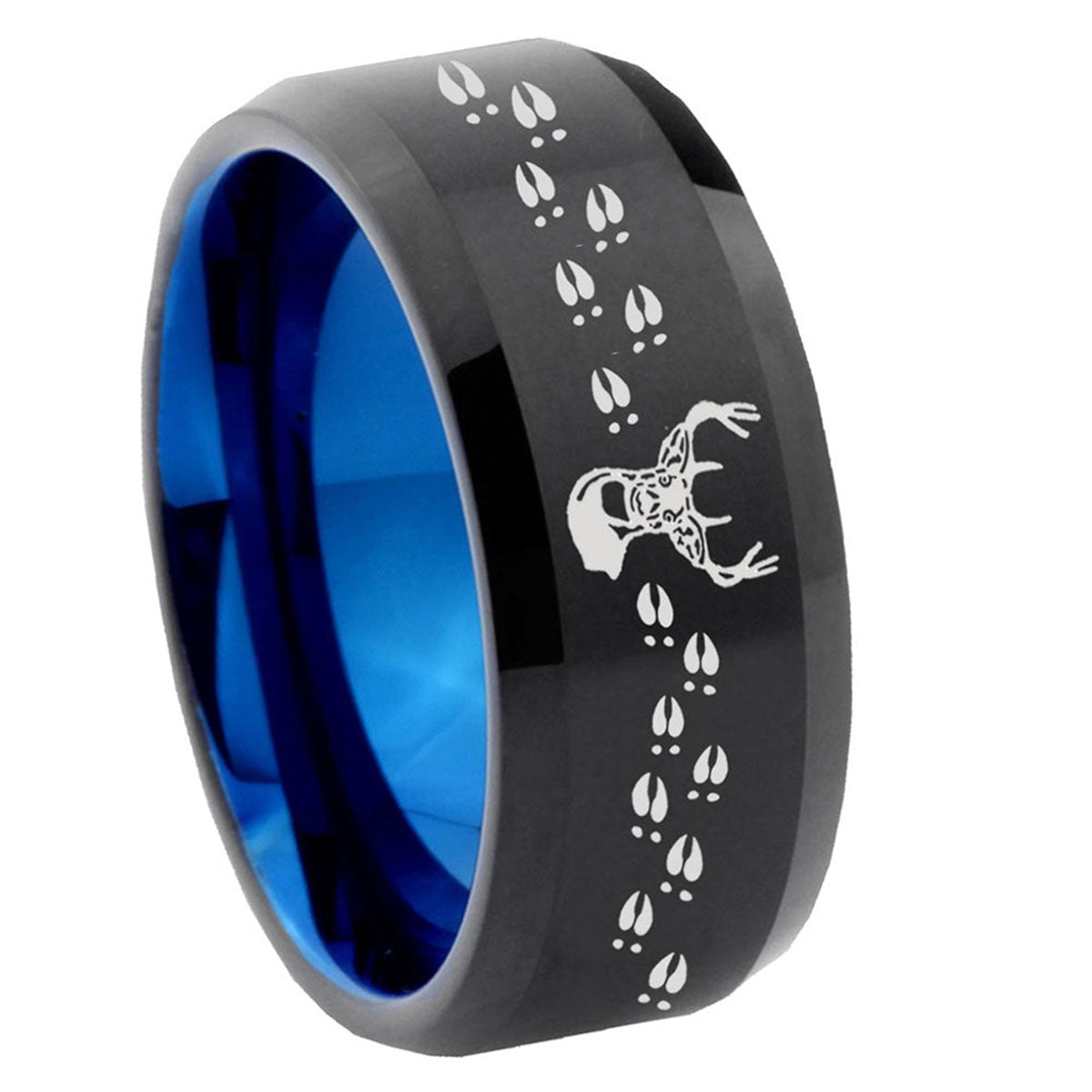 Celebrate nature with the 10mm Deer Antler Bevel Tungsten Carbide Blue Wedding Ring. This blue tungsten ring with Deer Antler design is perfect for weddings.