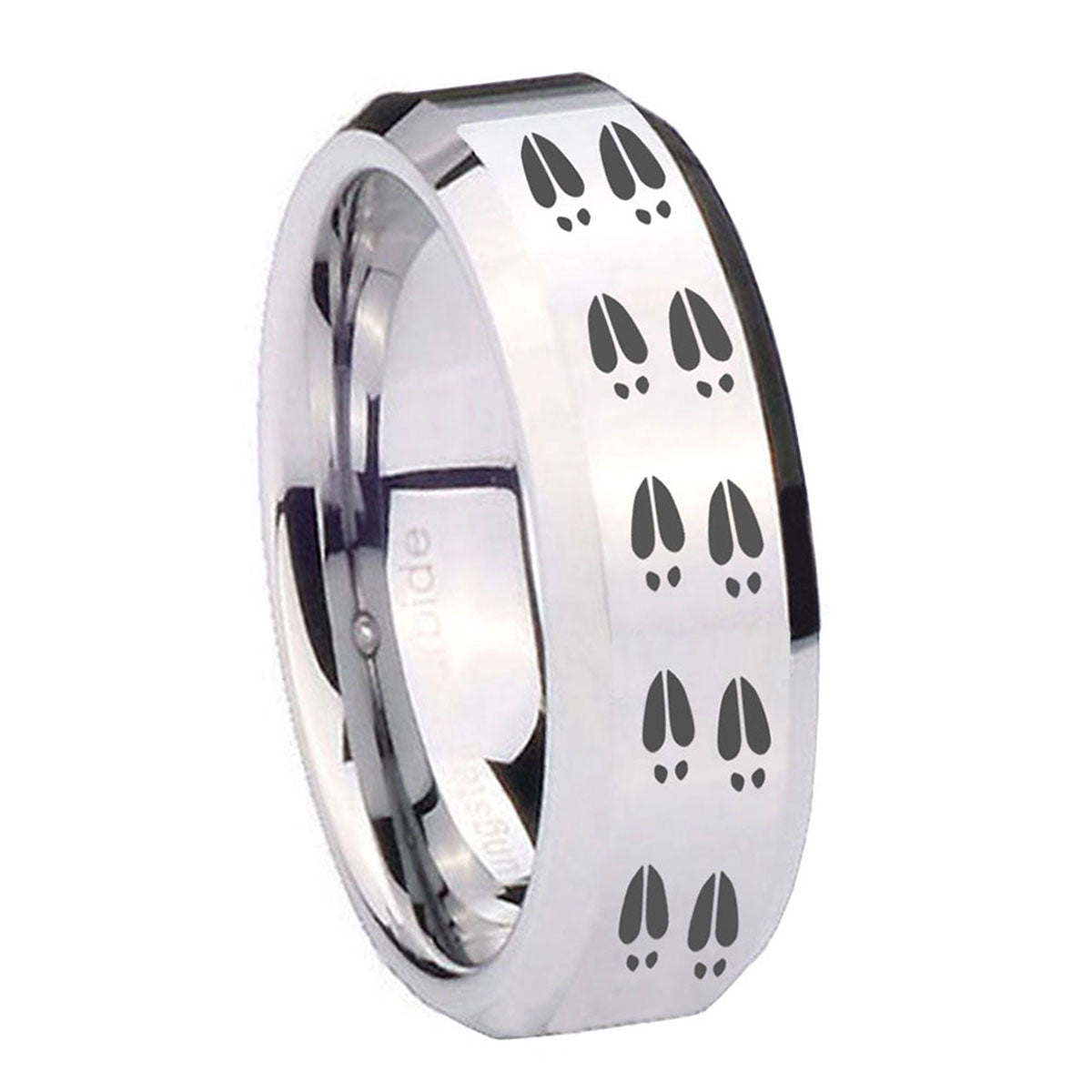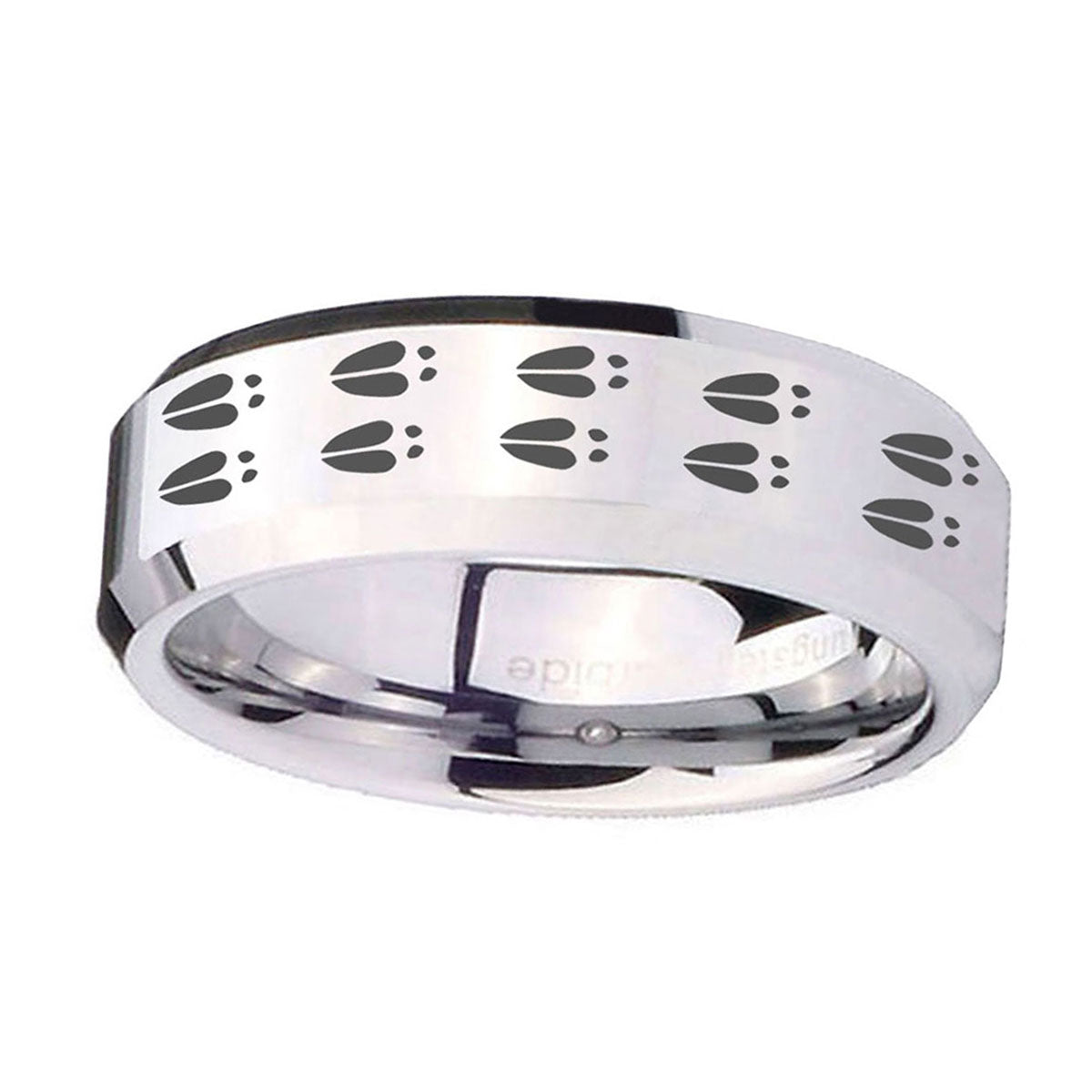 10mm Deer Tracks Beveled Edges Silver Tungsten Carbide Anniversary Ring