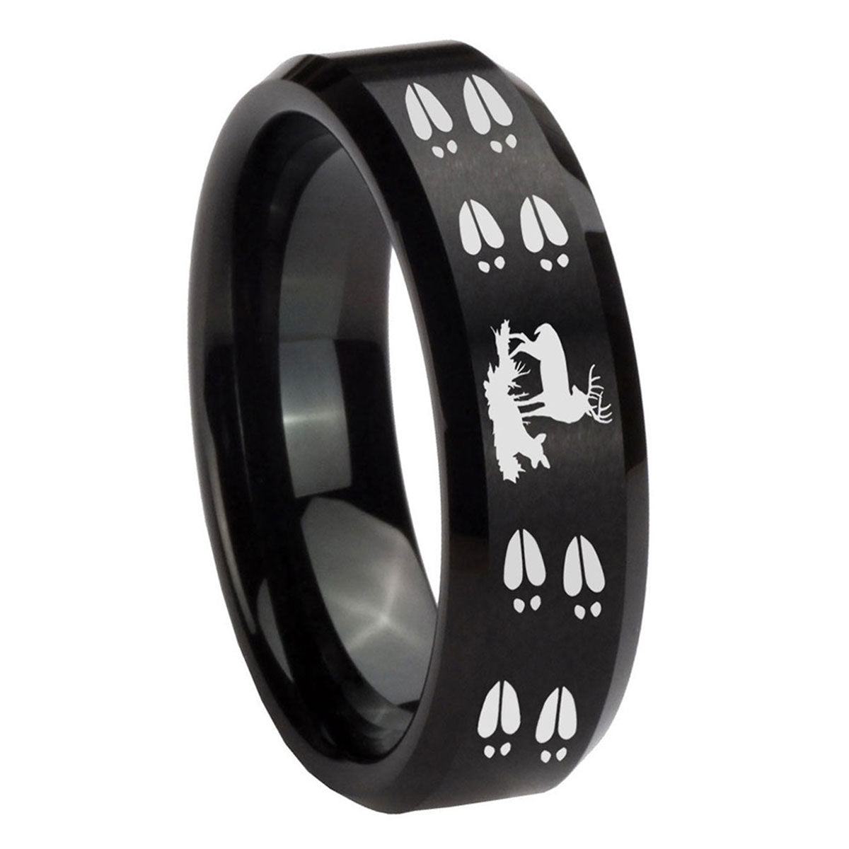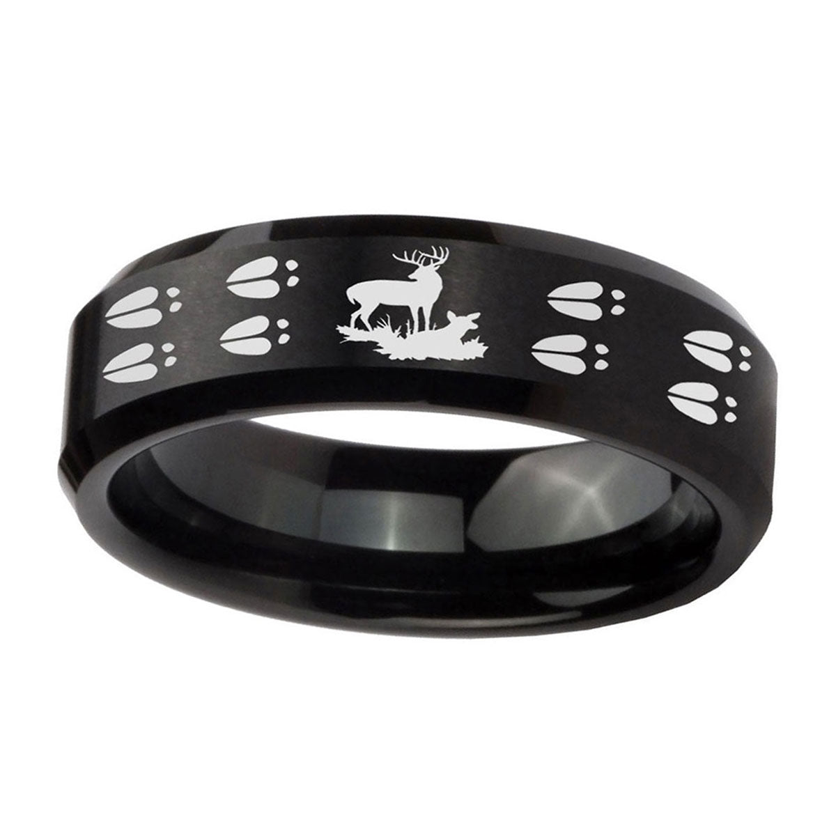 10mm Deer Hunting Tracks Beveled Brush Black Tungsten Men's Engagement Ring