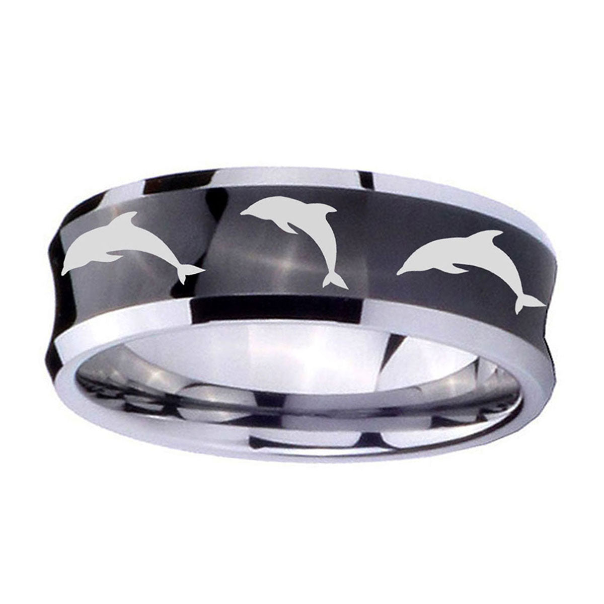 Propose with the 10mm Dolphins Concave Black Tungsten Carbide Mens Engagement Ring. This concave black tungsten ring with Dolphins design is ideal for engagements.