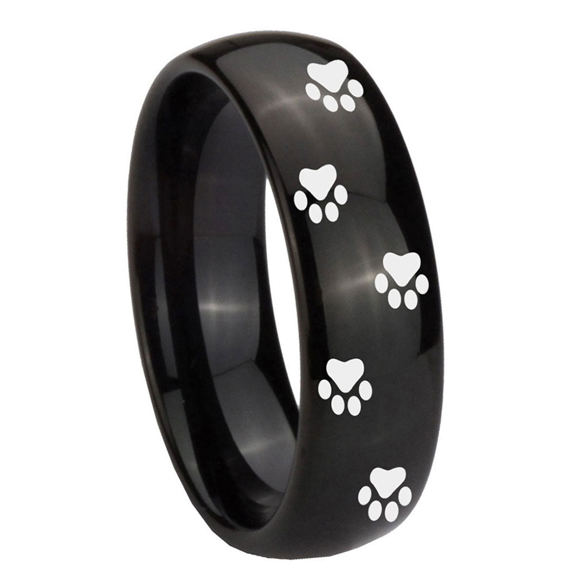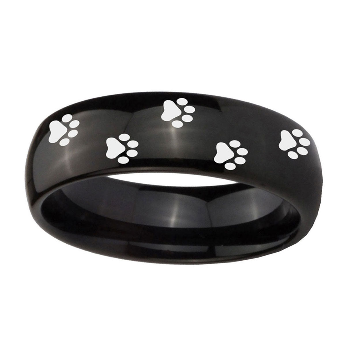 Celebrate with the 10mm Paw Print Dome Black Tungsten Carbide Men's Wedding Band. This dome-shaped black tungsten ring with Paw Print design is perfect for weddings.
