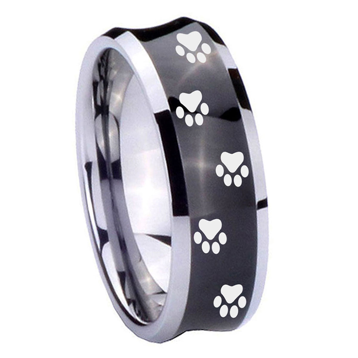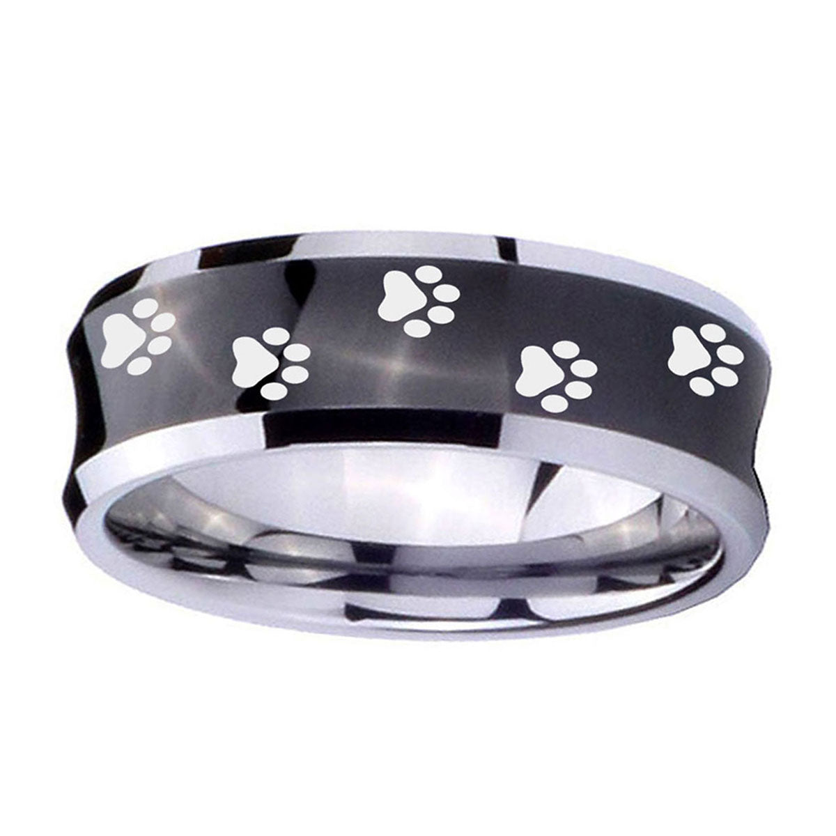 Propose with the 10mm Paw Print Concave Black Tungsten Carbide Men's Engagement Ring. This concave black tungsten ring with Paw Print design is ideal for engagements.