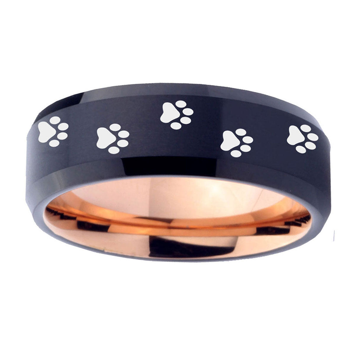 10mm Paw Print Design Bevel Tungsten Rose Gold Anniversary Ring