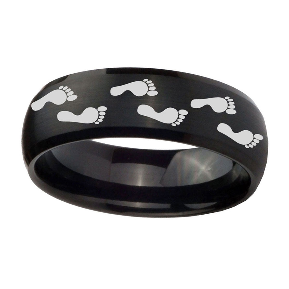 Style the 10mm Foot Print Dome Brush Black Tungsten Carbide Bands Ring. This brushed black dome ring with Foot Print design is perfect for men.