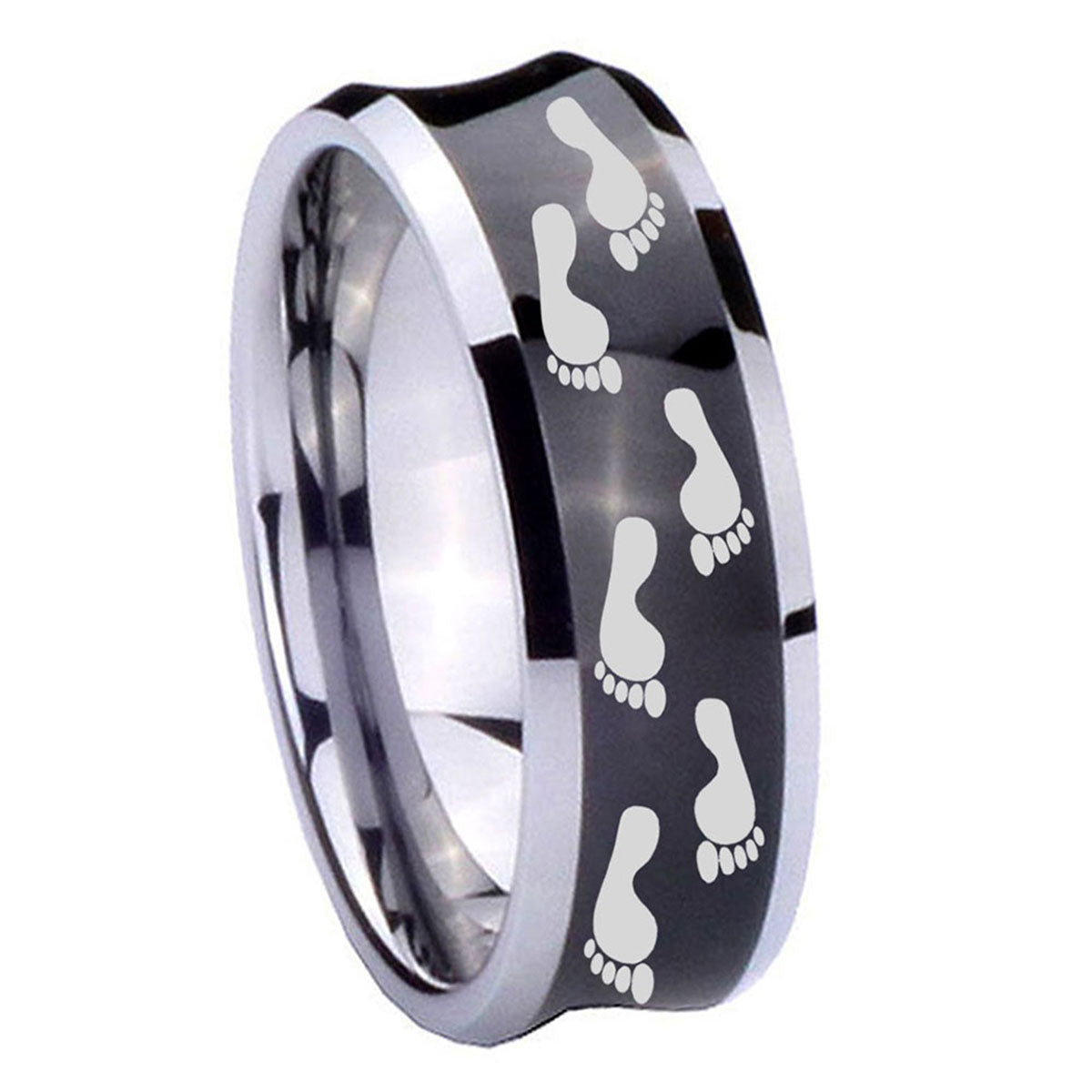 Make a promise with the 10mm Foot Print Concave Black Tungsten Carbide Men's Promise Rings. This concave black tungsten ring with Foot Print design is ideal for commitments.