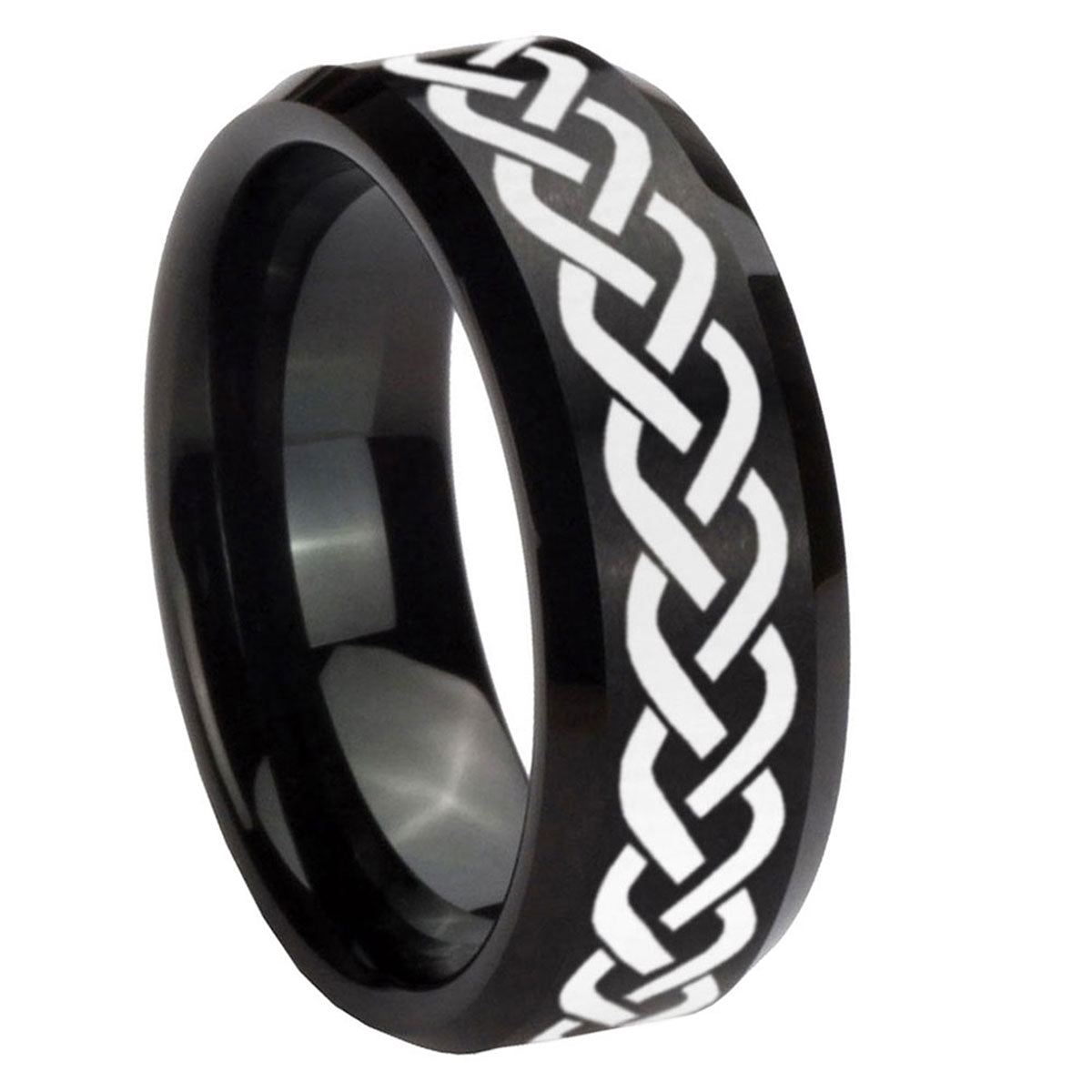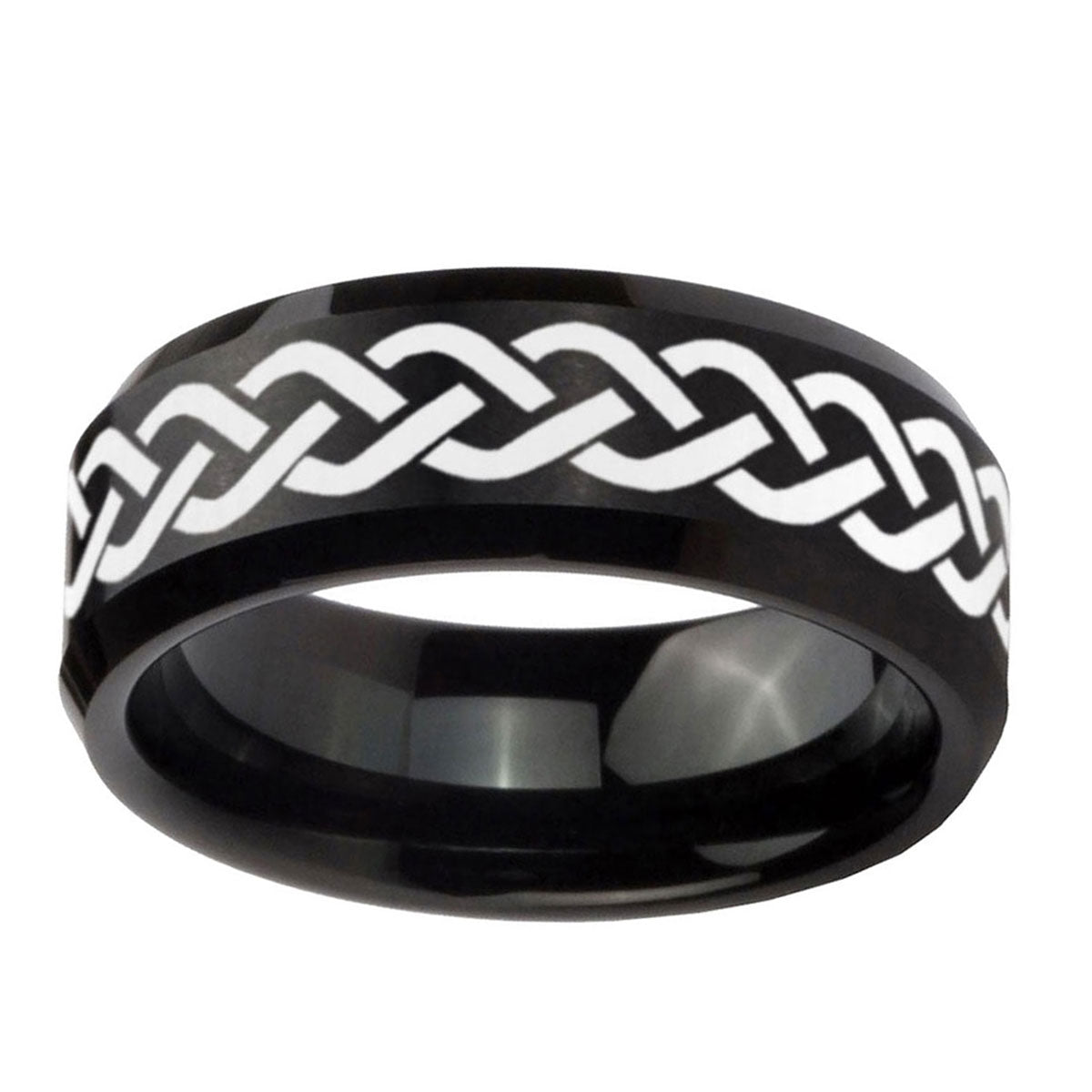 10mm Laser Celtic Knot Beveled Edges Brush Black Tungsten Men's Engagement Ring