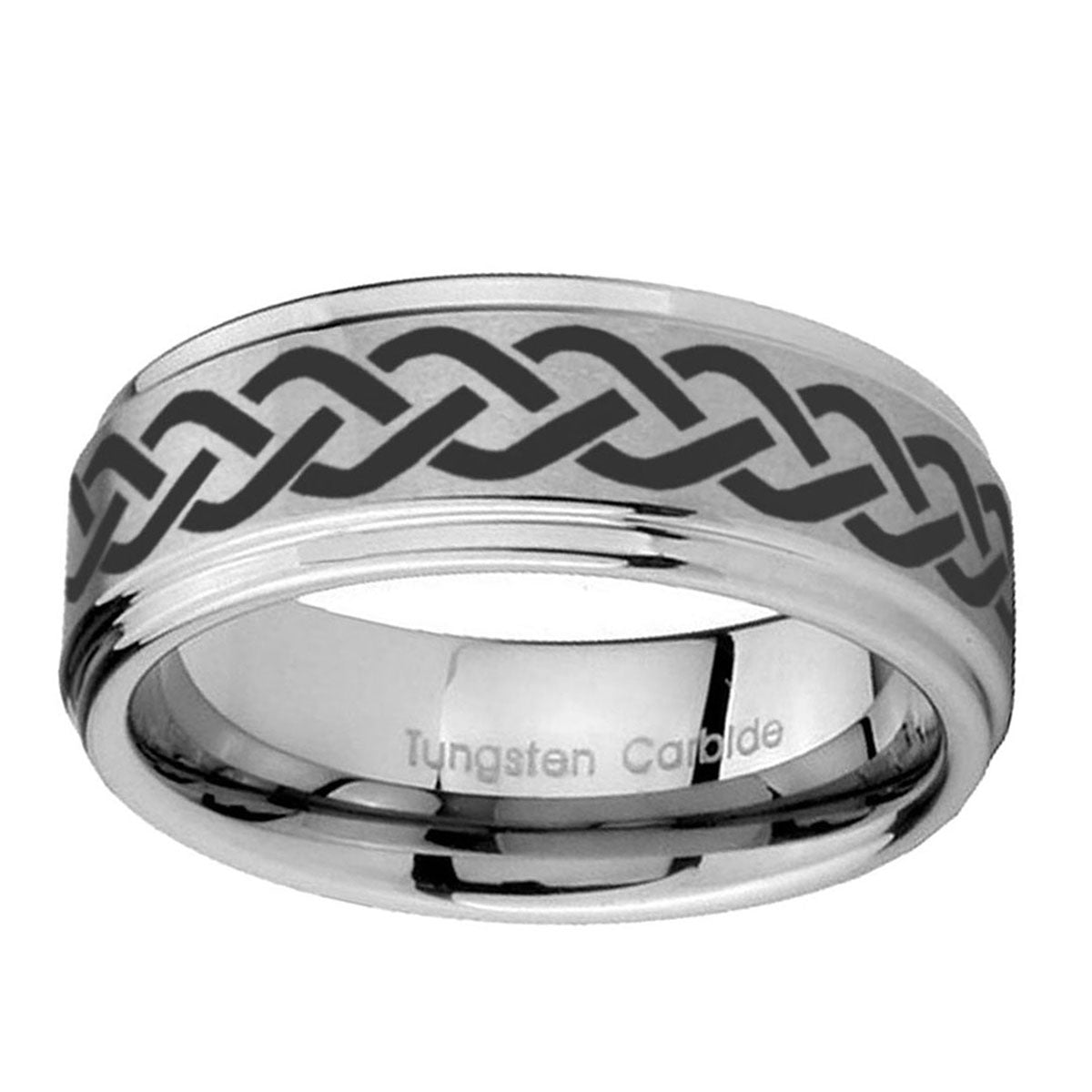 10mm Laser Celtic Knot Step Edges Brushed Tungsten Carbide Men's Wedding Ring