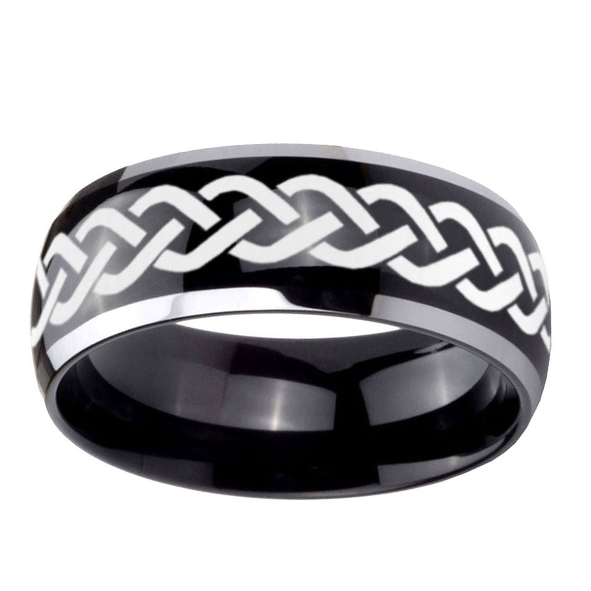 Personalize the 10mm Laser Celtic Knot Dome Glossy Black 2 Tone Tungsten Carbide Engraved Ring. This glossy black and 2-tone dome ring with Laser Celtic Knot design is perfect for custom engravings.