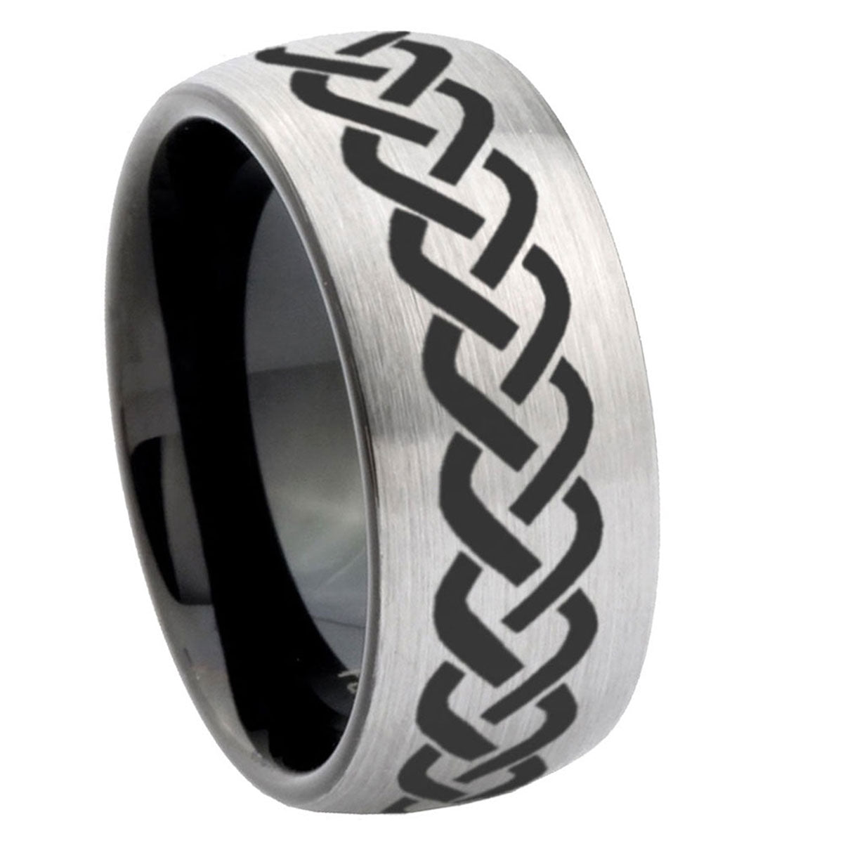 10mm Laser Celtic Knot Dome Tungsten Carbide Silver Black Engagement Ring