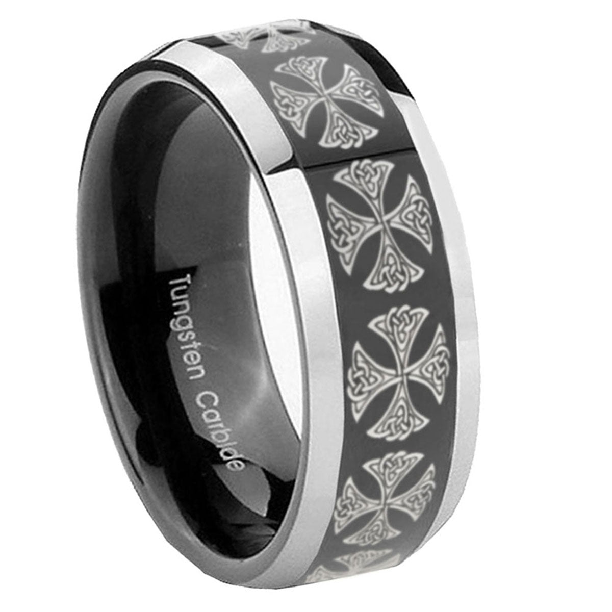 10mm Medieval Cross Beveled Glossy Black 2 Tone Tungsten Engagement Ring