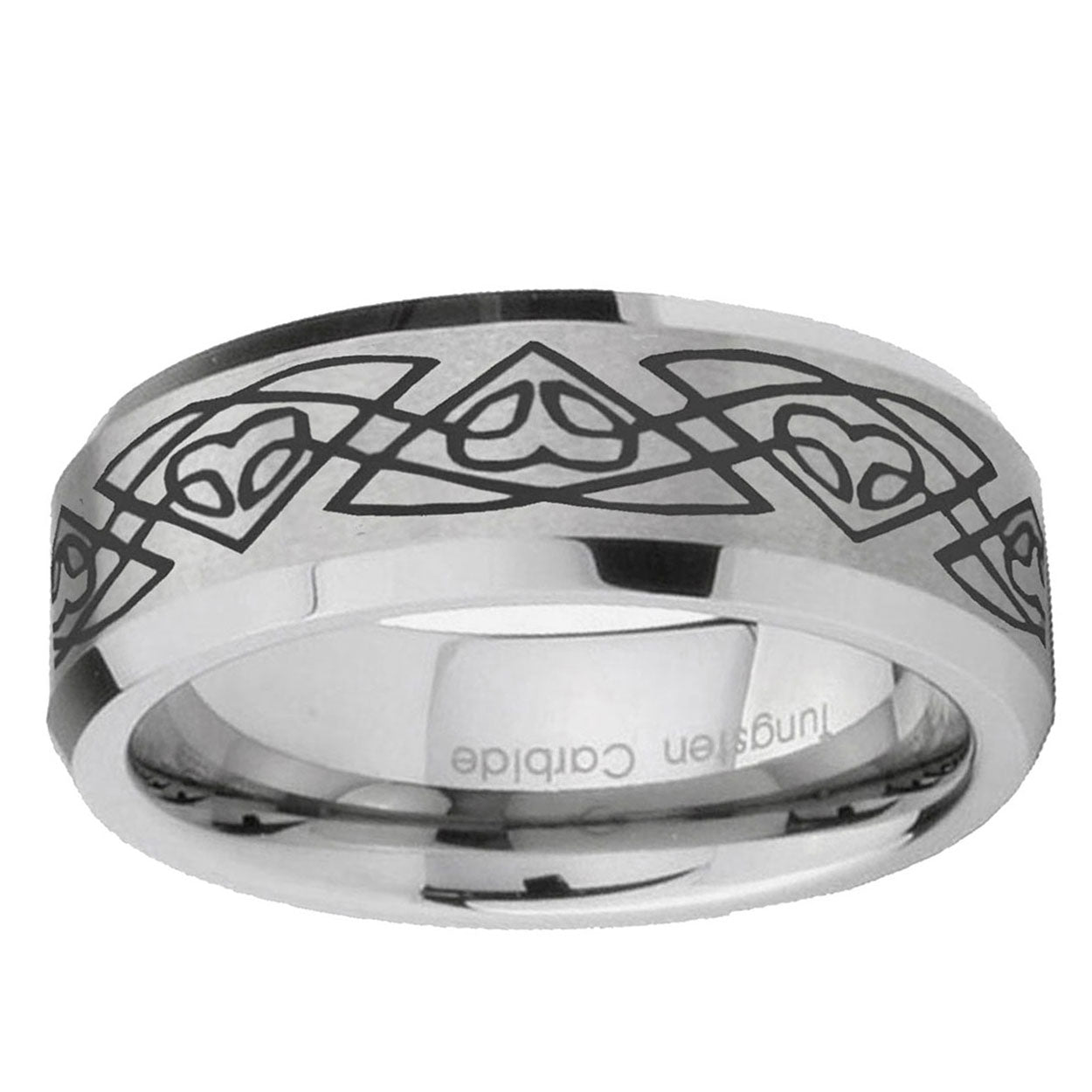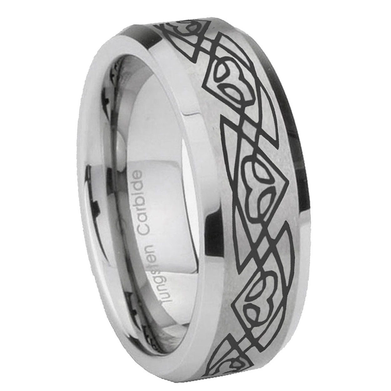 6, 8mm Celtic Braided Bevel Edge Brushed Gray Tungsten Wedding Engagement Ring