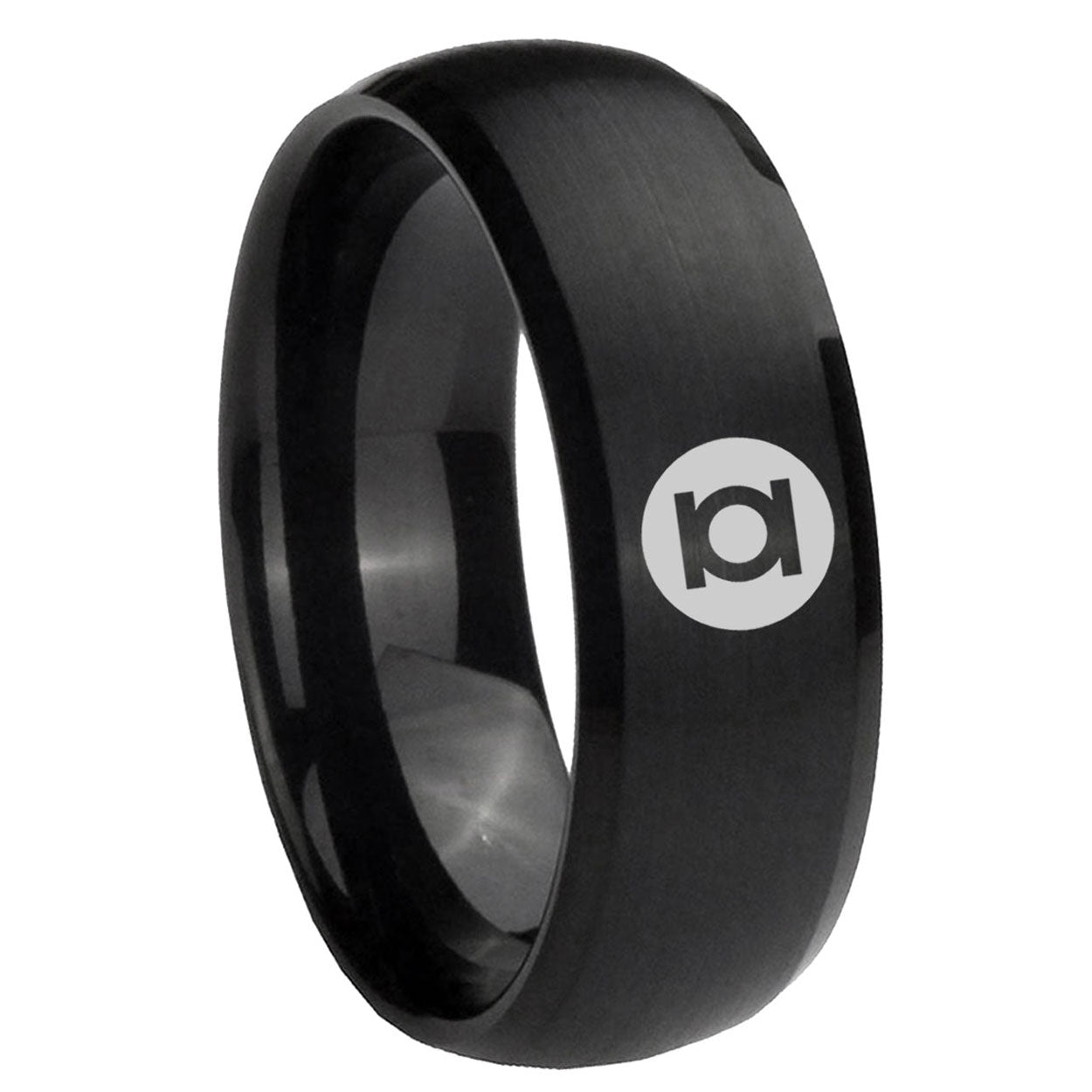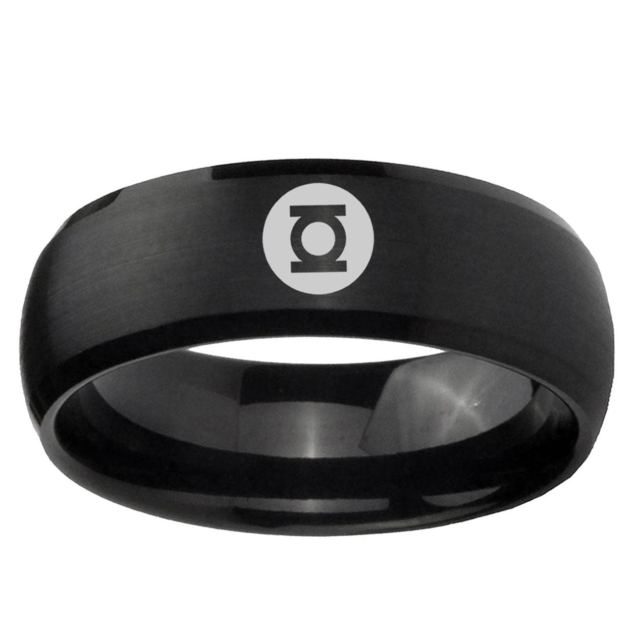 Intruding 5, 8mm Green Lantern Dome Matte Black Tungsten Men Ring . Offer in both 5mm and 8mm band width brushed black plated finished from size 4 to 14
