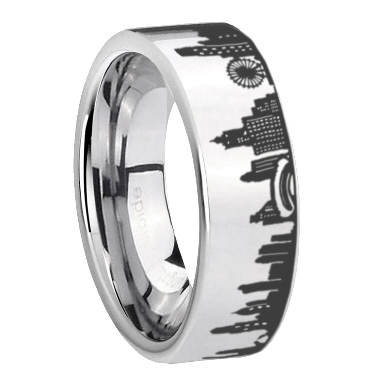 8mm Chicago City Pipe Cut High Polish Gray Tungsten Man Wedding Ring