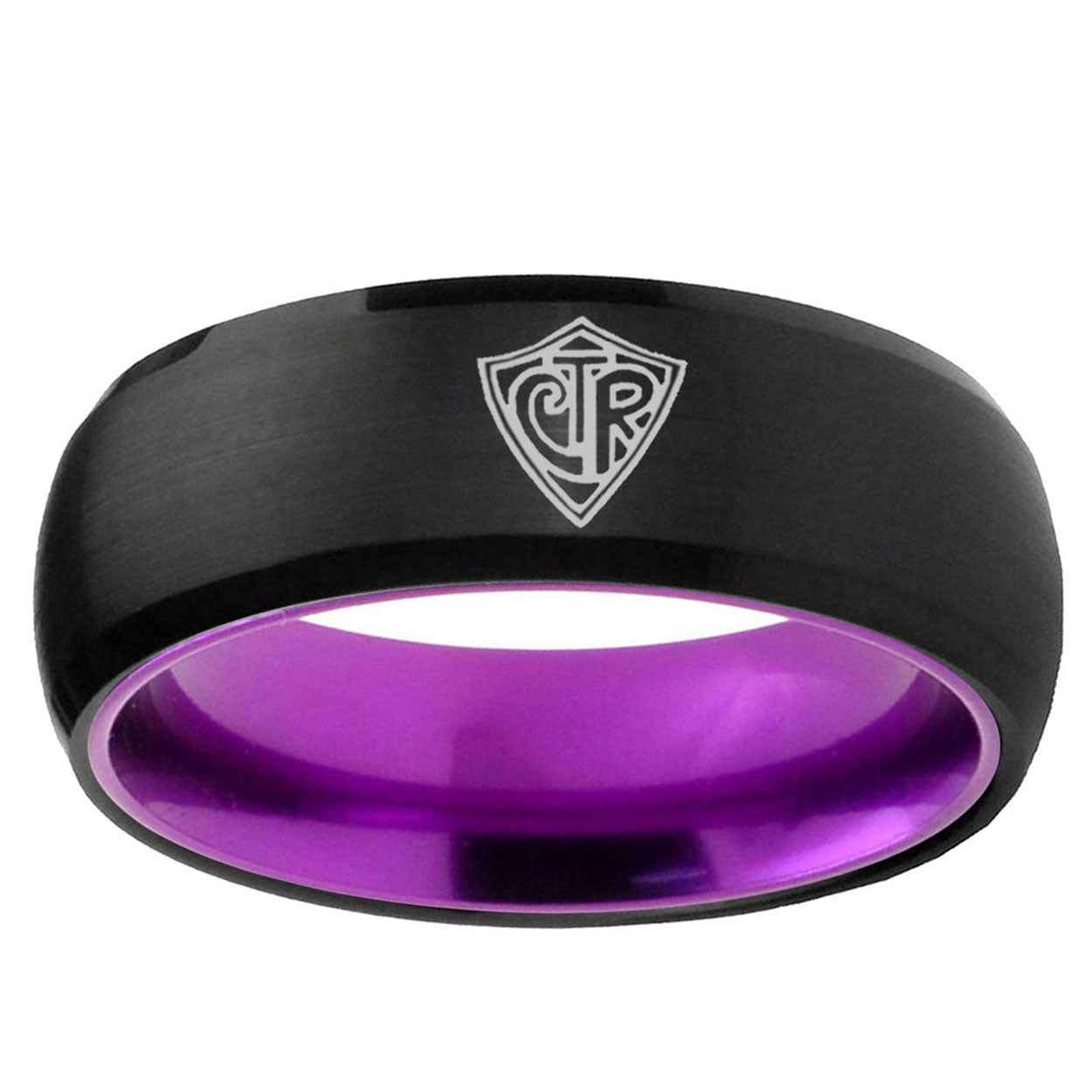 Intruding 8mm CTR Dome Black And Purple Tungsten Carbide Mens Promise Ring . Offer in men wedding band in 8mm band width Black And Purple plated finished from size 7 to 14