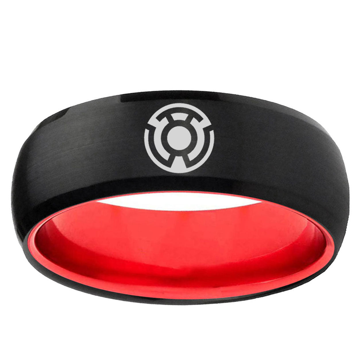 Intruding 8mm Yellow Lantern Dome Black Red Tungsten Men Wedding Band . Offer in 8mm band width black and red finished from size 7 to 14