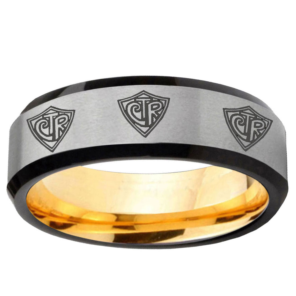 8mm Multiple CTR Beveled Edge Gray And Gold Tungsten Carbide Men's Promise Rings