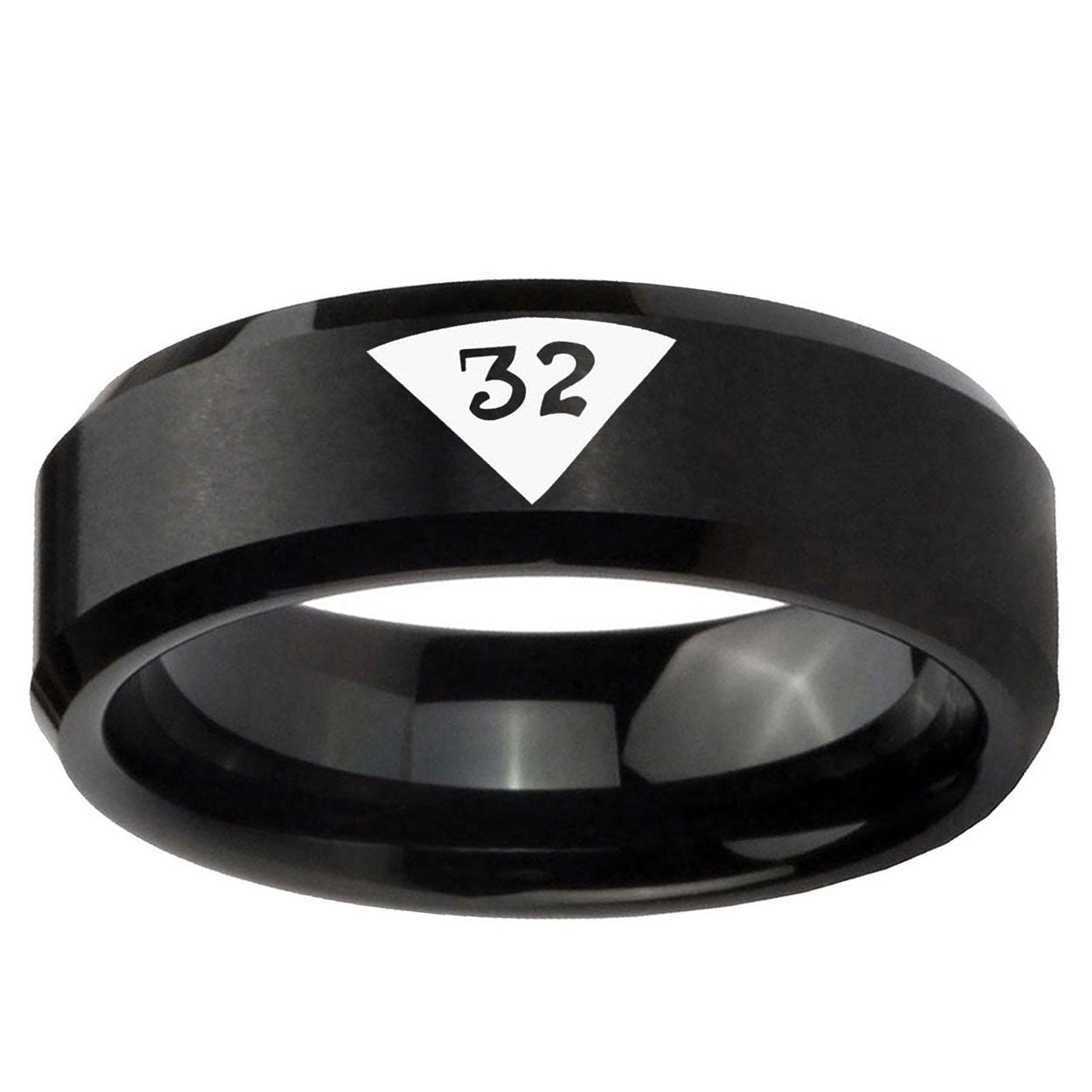 Intruding 5, 8mm Masonic 32 Triangle Design Freemason Beveled Edges Brush Black Tungsten Carbide Wedding Band Mens . Offer in both 5mm and 8mm band width brushed black plated finished from size 4 to 14