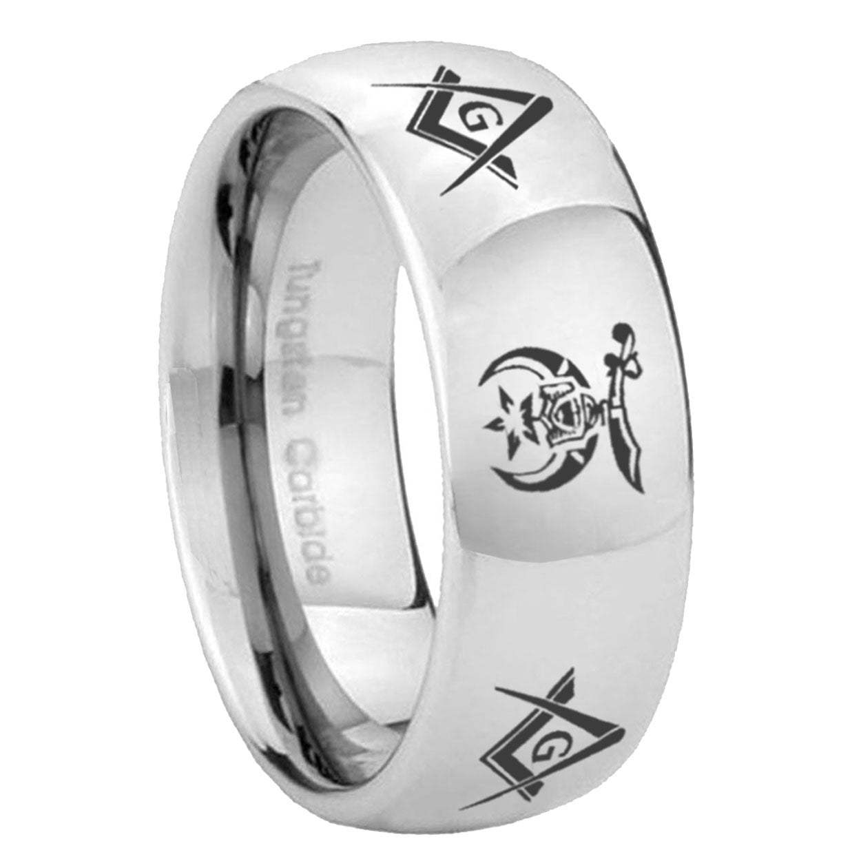 Intruding 5, 8mm Masonic Shriners Mirror Dome Tungsten Carbide Engraved Ring . Offer in both 5mm and 8mm band width polished silver finished from size 4 to 14