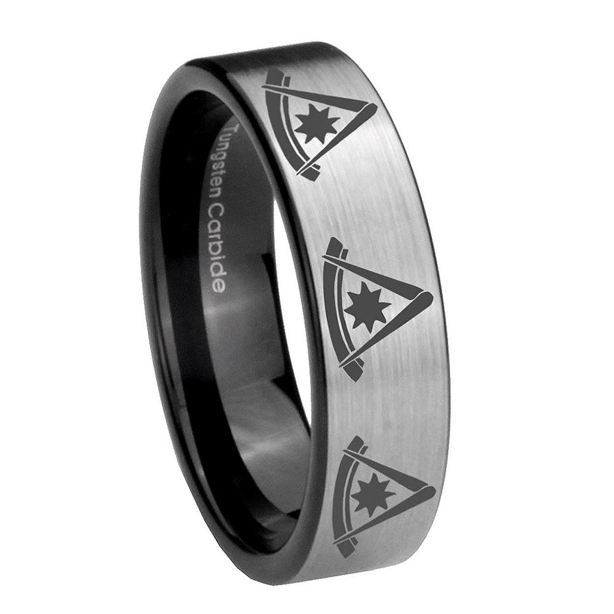 Intruding 6, 8mm Multiple Pester Master Masonic Pipe Cut Brushed Silver Tungsten Bands Ring . Offer in both 6mm and 8mm band width brushed silver and black plated finished from size 5 to 14