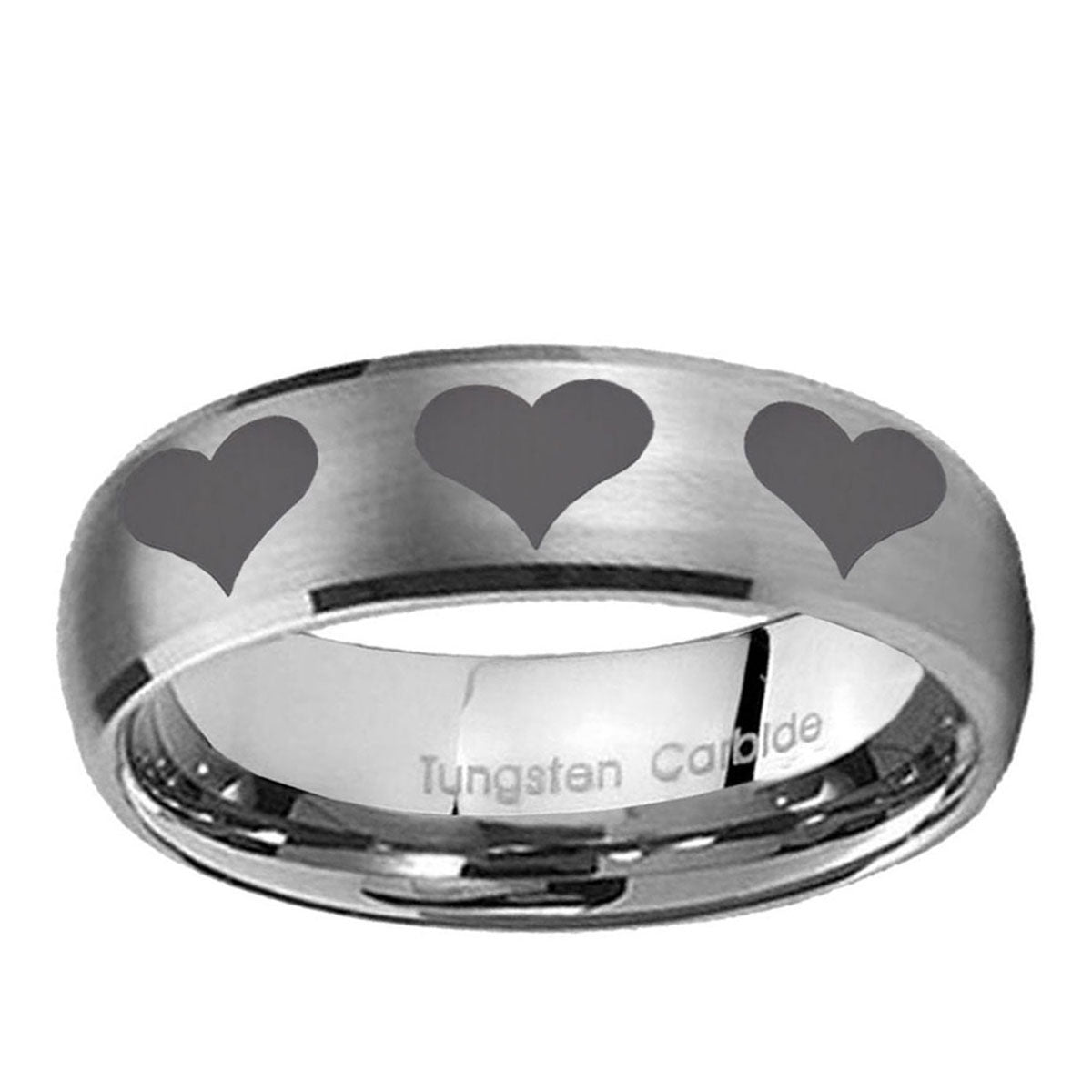 5, 8mm Multiple Heart Dome Brushed Tungsten Carbide Personalized Ring
