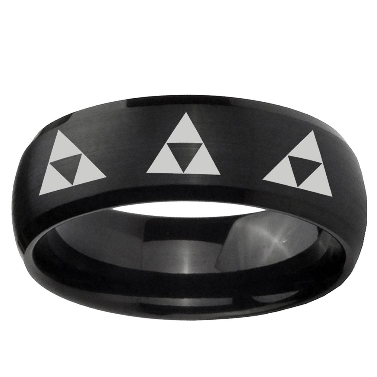 5, 8mm Multiple Zelda Triforce Dome Brush Black Tungsten Carbide Men's Band Ring