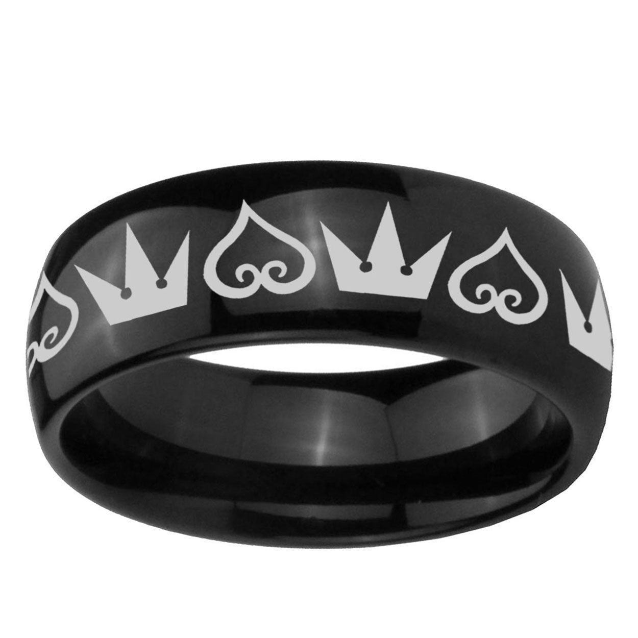 Intruding 5, 8mm Hearts and Crowns Dome Black Tungsten Carbide Mens Ring Personalized . Offer in both 5mm and 8mm band width polished black plated finished from size 4 to 14