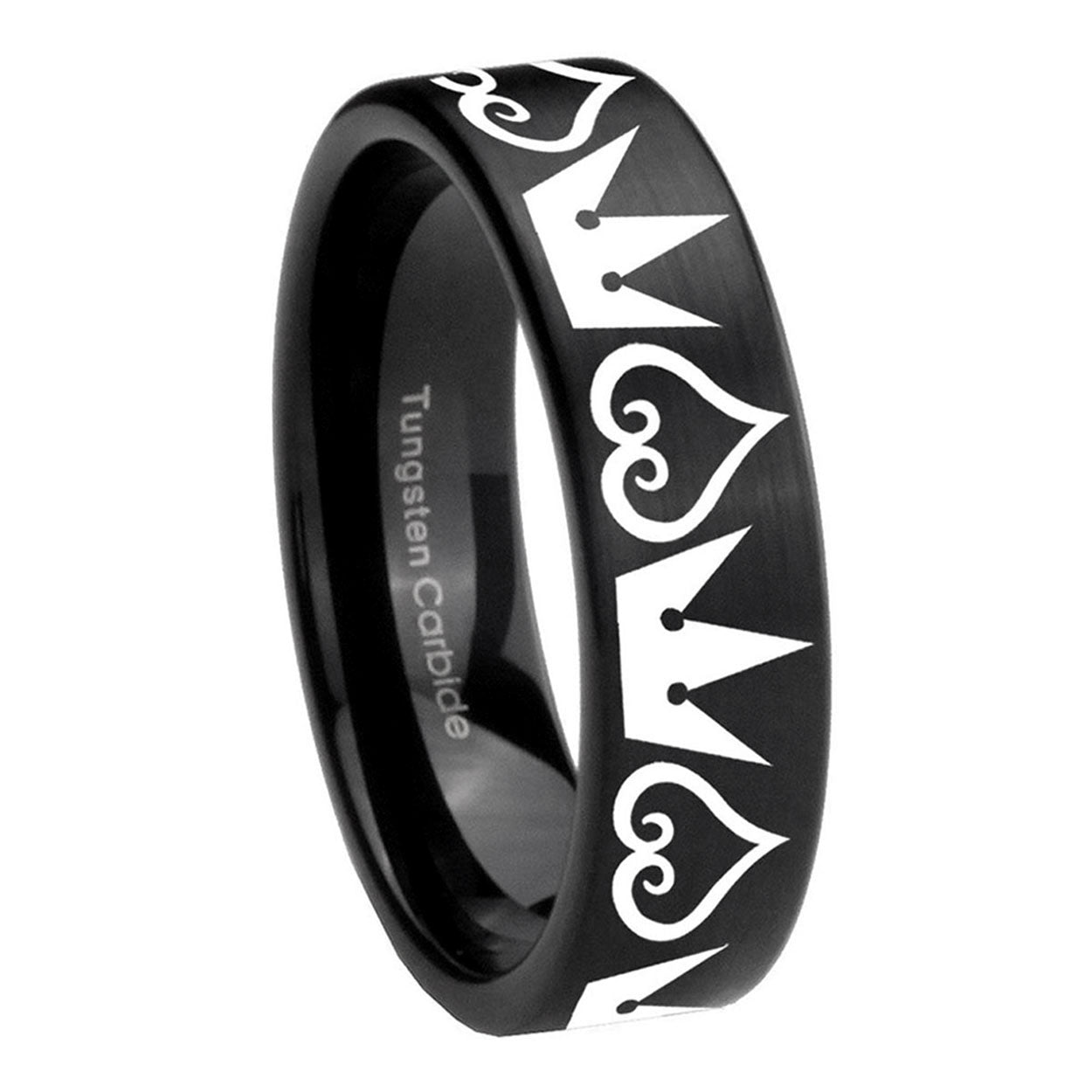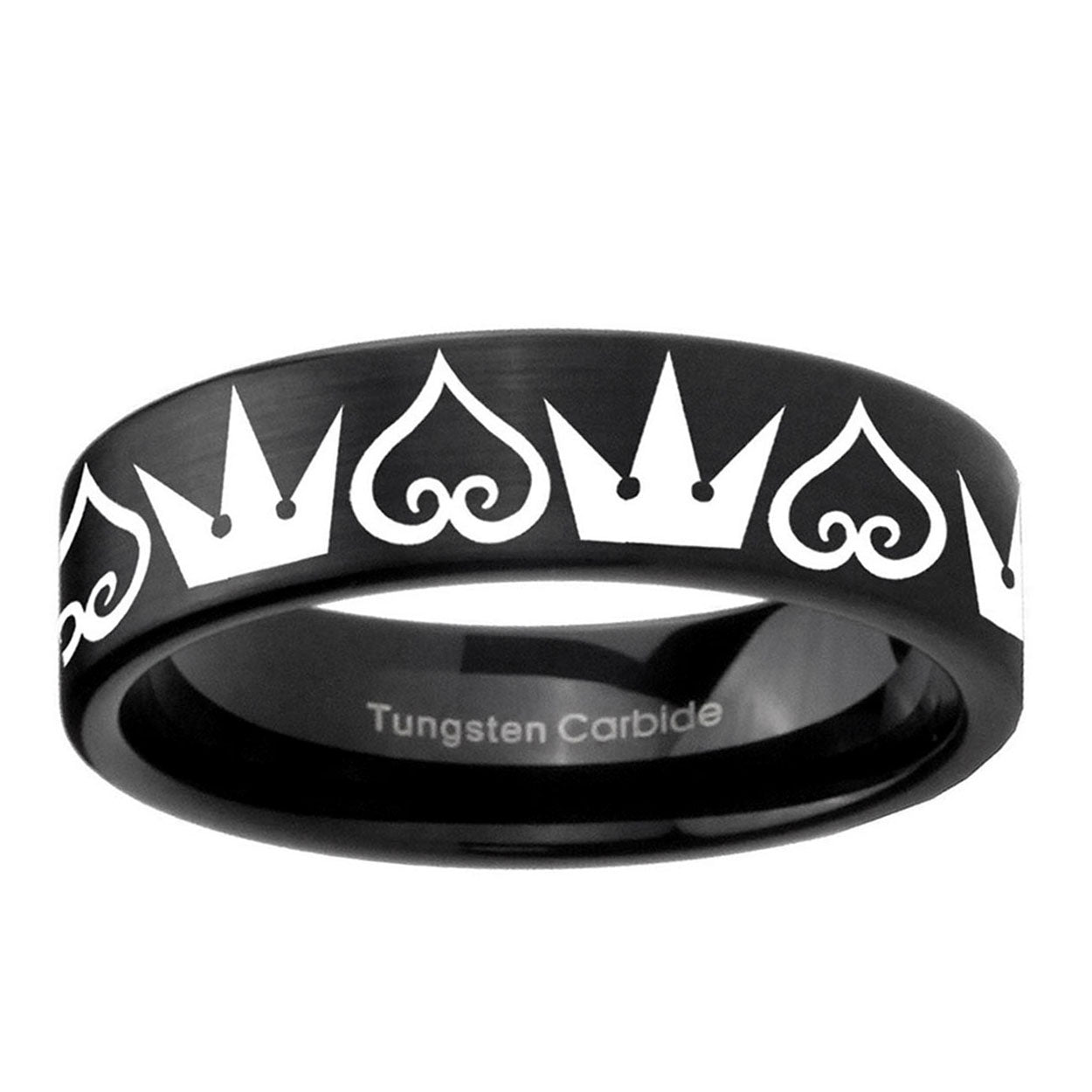 Intruding 6, 8mm Hearts and Crowns Pipe Cut Brush Black Tungsten Men's Engagement Band . Offer in both 6mm and 8mm band width brushed black plated finished from size 5 to 14
