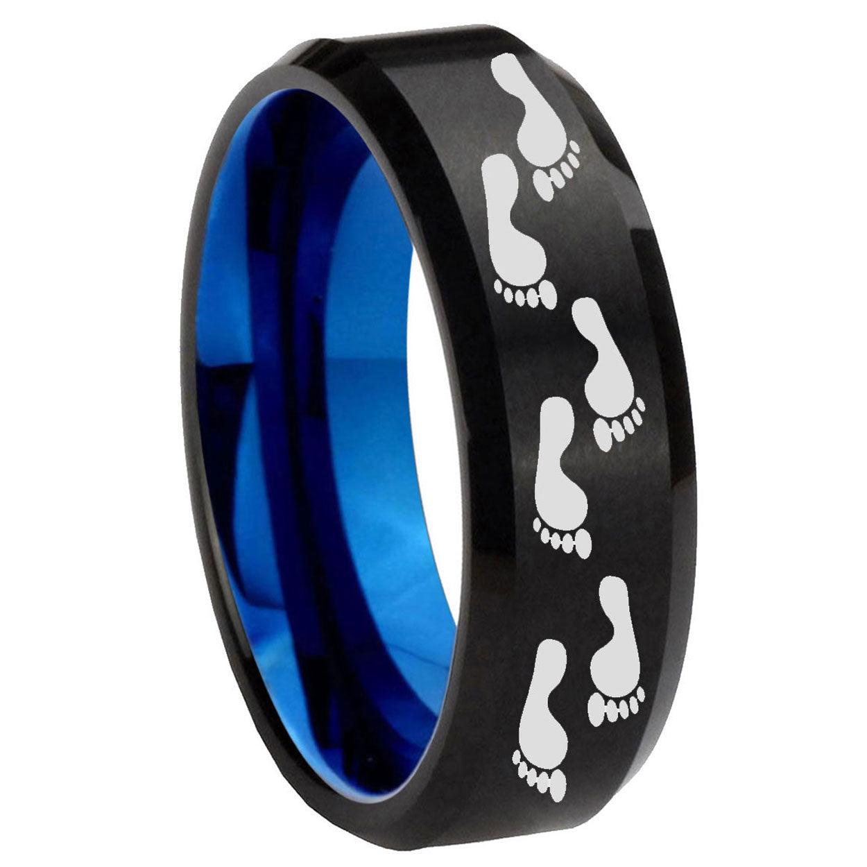 5, 8mm Foot Print Beveled Edge Blue and Black Tungsten Carbide Men's Ring