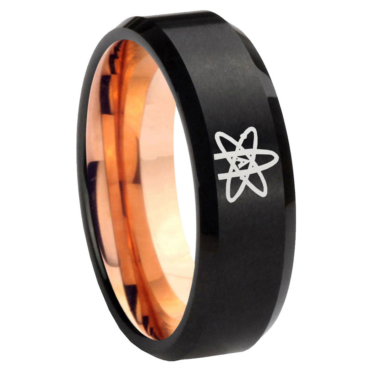 Intruding 5, 8mm American Atheist Beveled Edge Rose Gold and Black Tungsten Men's Bands Ring . Offer in both 5mm and 8mm band width Rose Gold and Black finished from Size 4 to 14