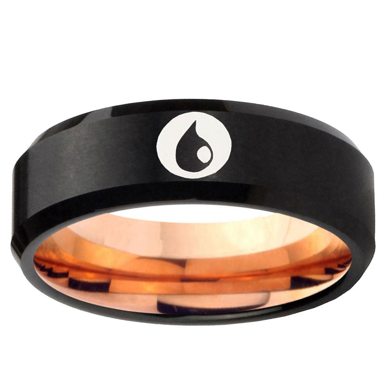5, 8mm Magic Gathering Beveled Rose Gold and Black Tungsten Wedding Engagement Ring