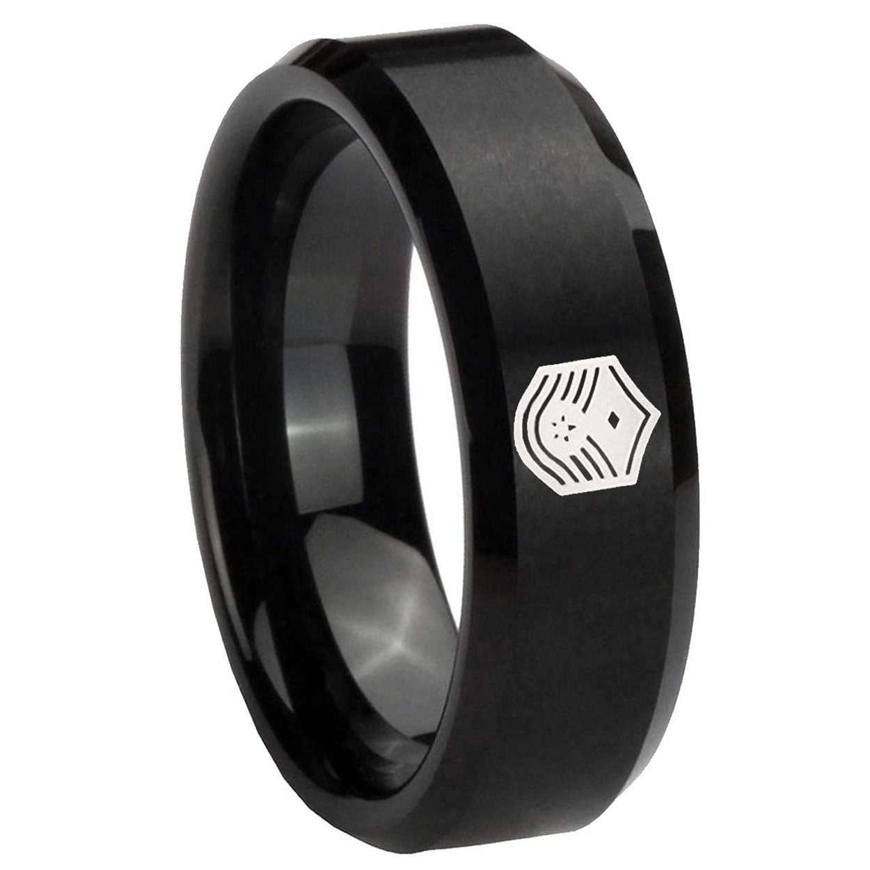 5, 8mm Chief Master Sergeant Vector Beveled Brush Black Tungsten Promise Ring