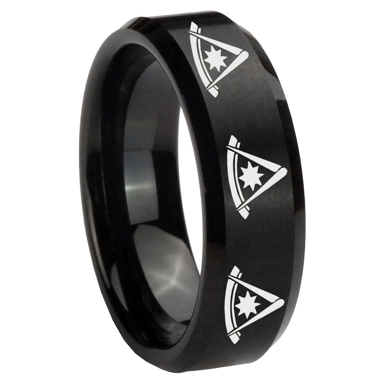 5, 8mm Multiple Pester Master Masonic Beveled Brush Black Tungsten Bands Ring