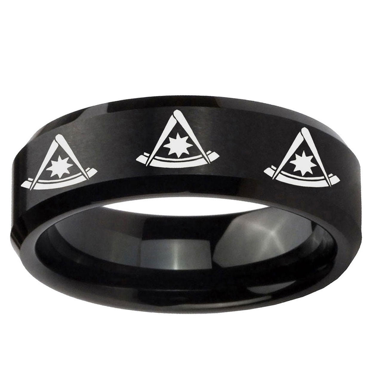 Intruding 5, 8mm Multiple Pester Master Masonic Beveled Brush Black Tungsten Bands Ring . Offer in both 5mm and 8mm band width brushed black plated finished from size 4 to 14