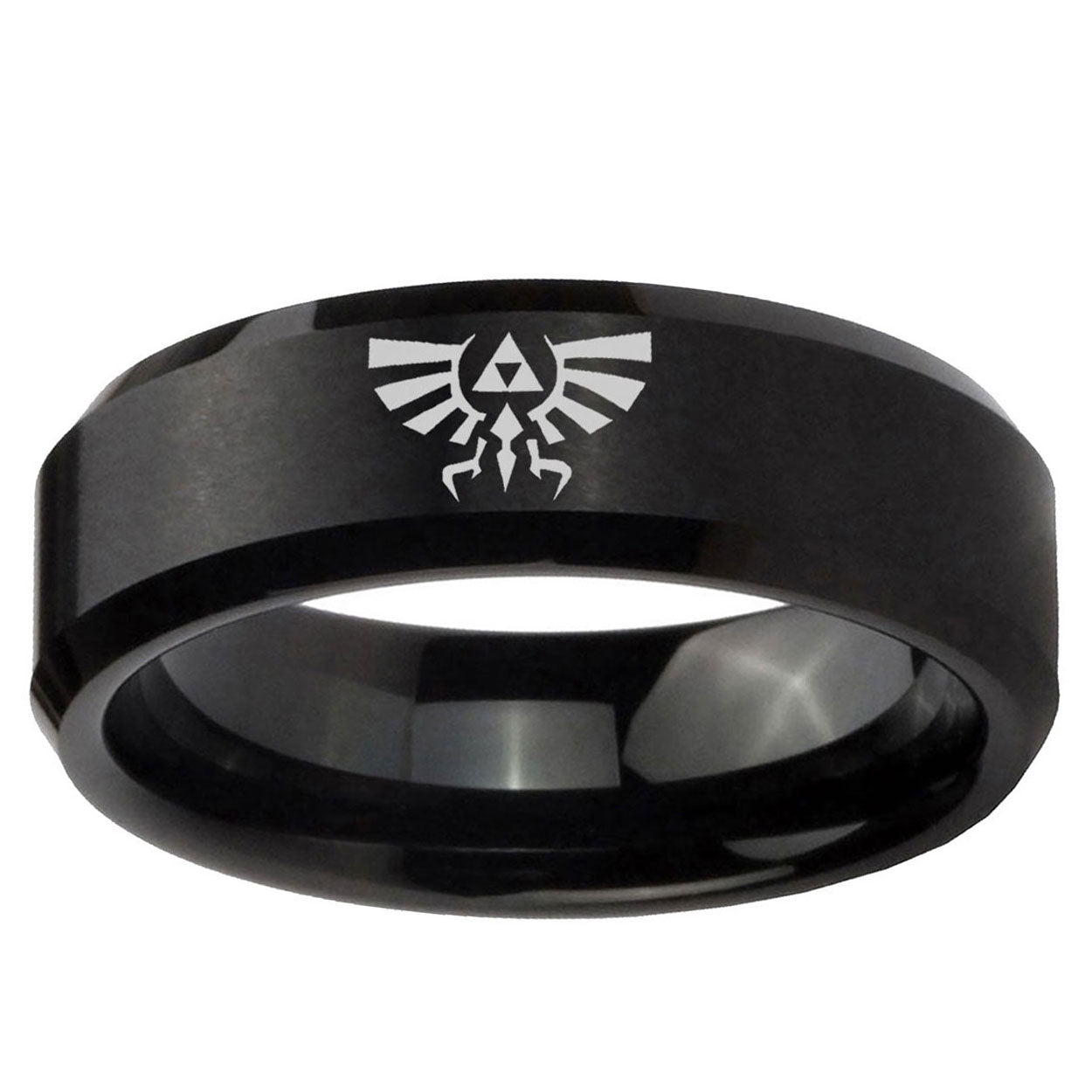 Intruding 5, 8mm Zelda Skyward Sword Beveled Edges Brush Black Tungsten Anniversary Ring . Offer in both 5mm and 8mm band width brushed black plated finished from size 4 to 14