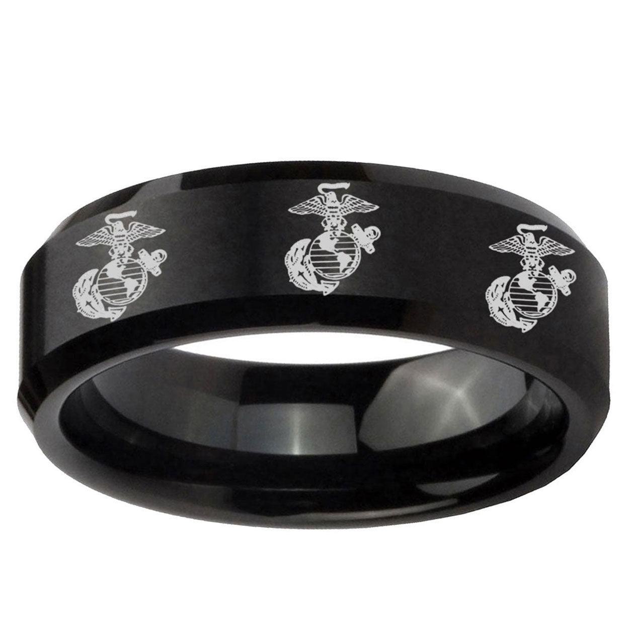 Intruding 5, 8mm Multiple Marine Beveled Edges Brush Black Tungsten Mens Engagement Band . Offer in both 5mm and 8mm band width brushed black plated finished from size 4 to 14