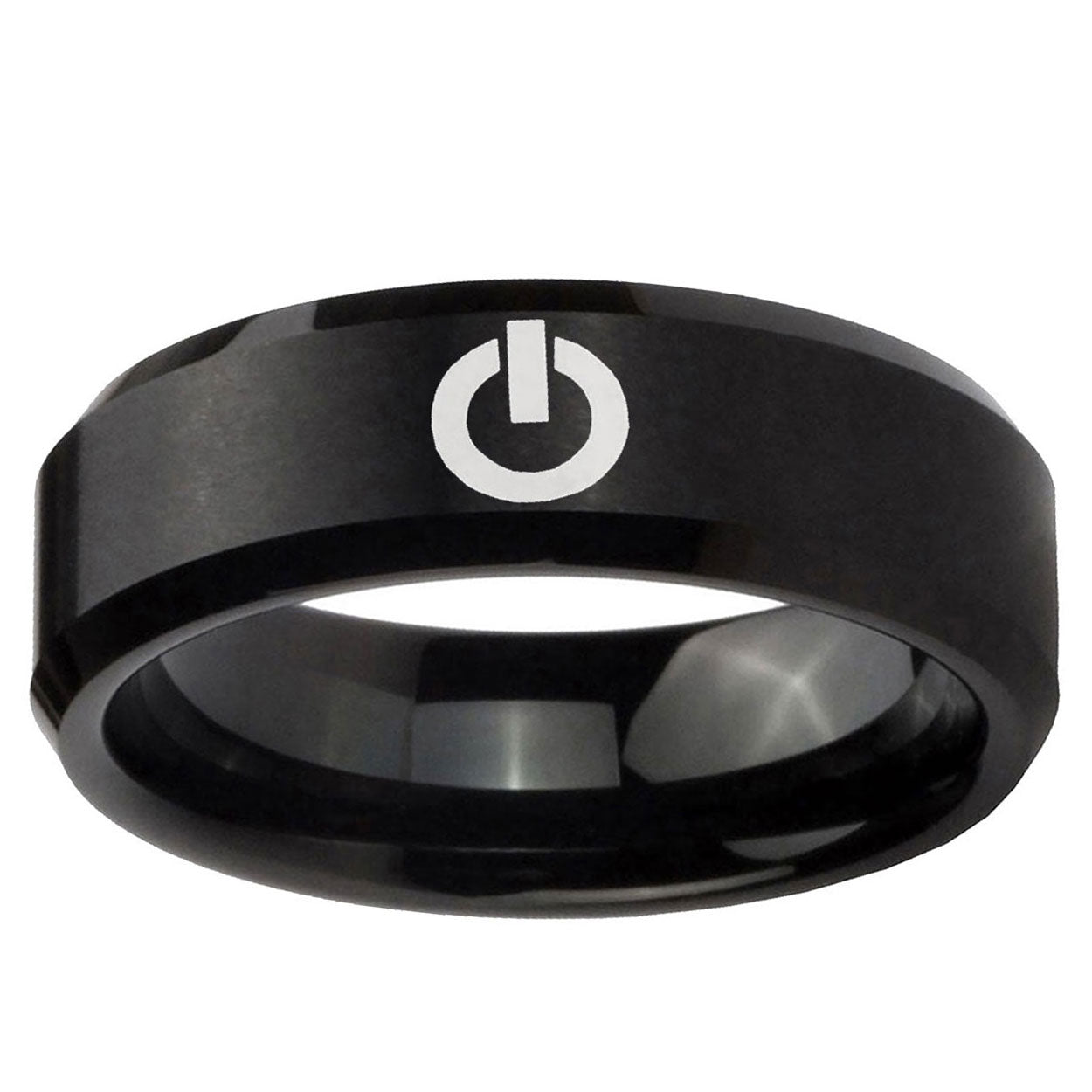 Intruding 5, 8mm Power Beveled Edges Brush Black Tungsten Carbide Mens Engagement Band . Offer in both 5mm and 8mm band width brushed black plated finished from size 4 to 14