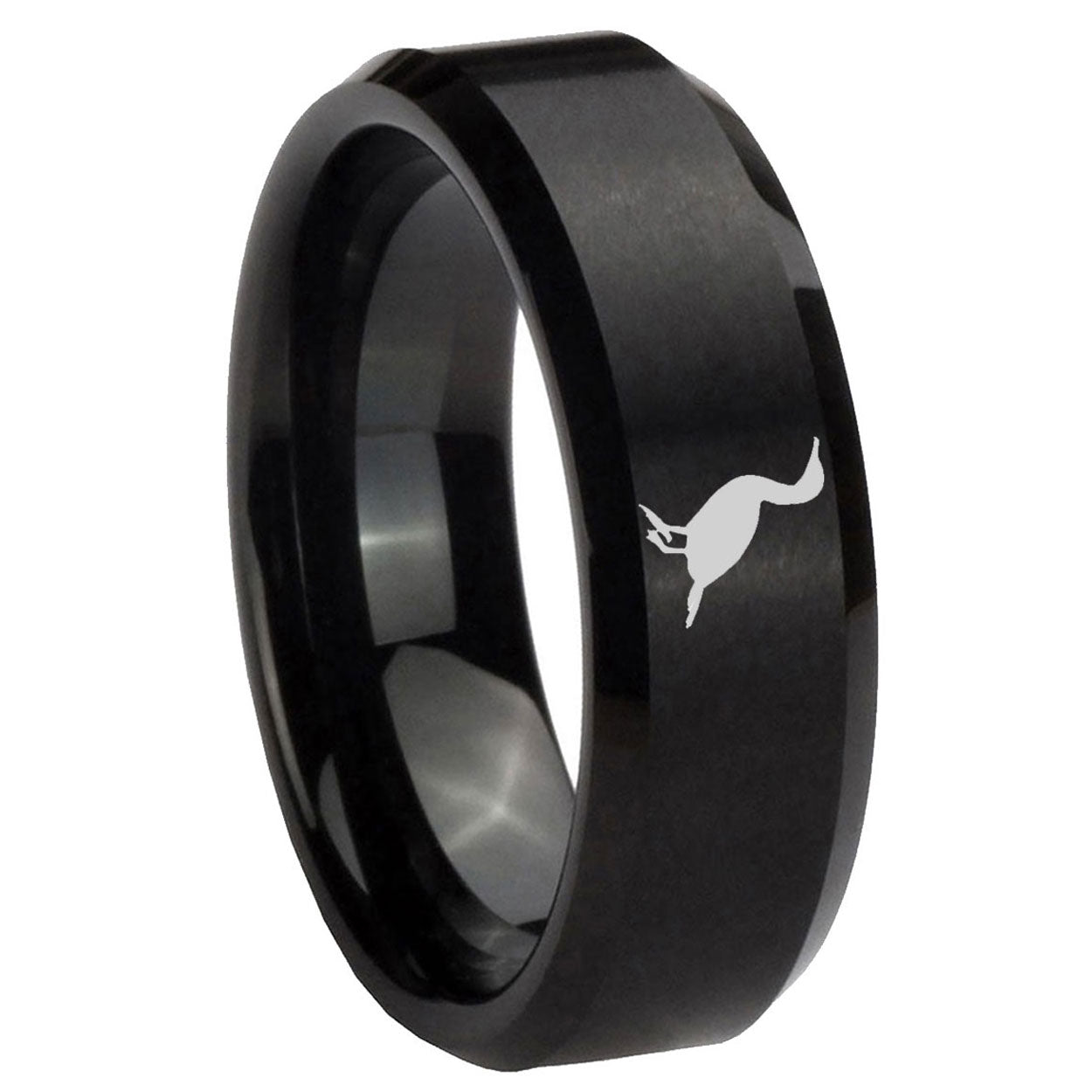 Intruding 5, 8mm Cormorant Beveled Edges Brush Black Tungsten Carbide Rings for Men . Offer in both 5mm and 8mm band width brushed black plated finished from size 4 to 14