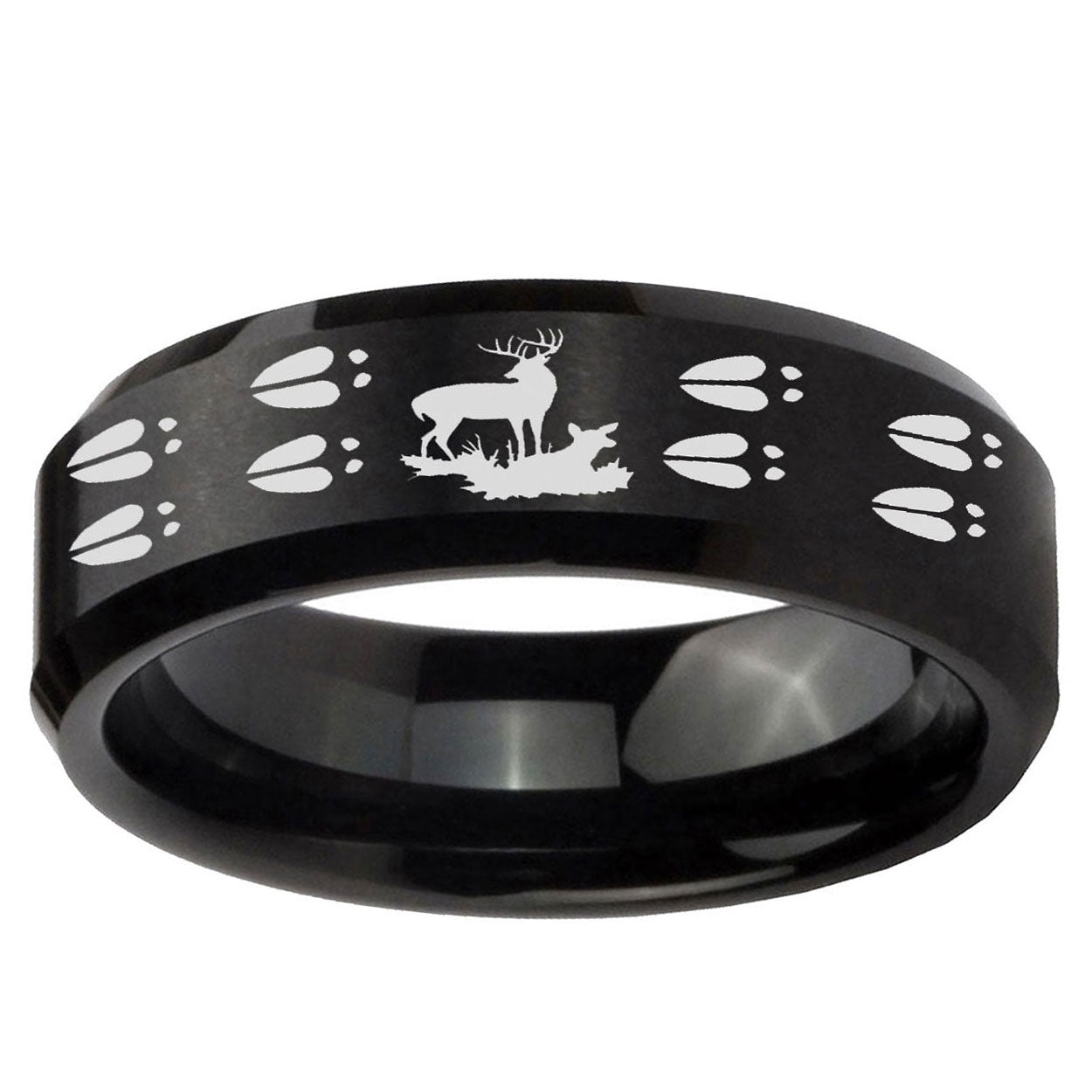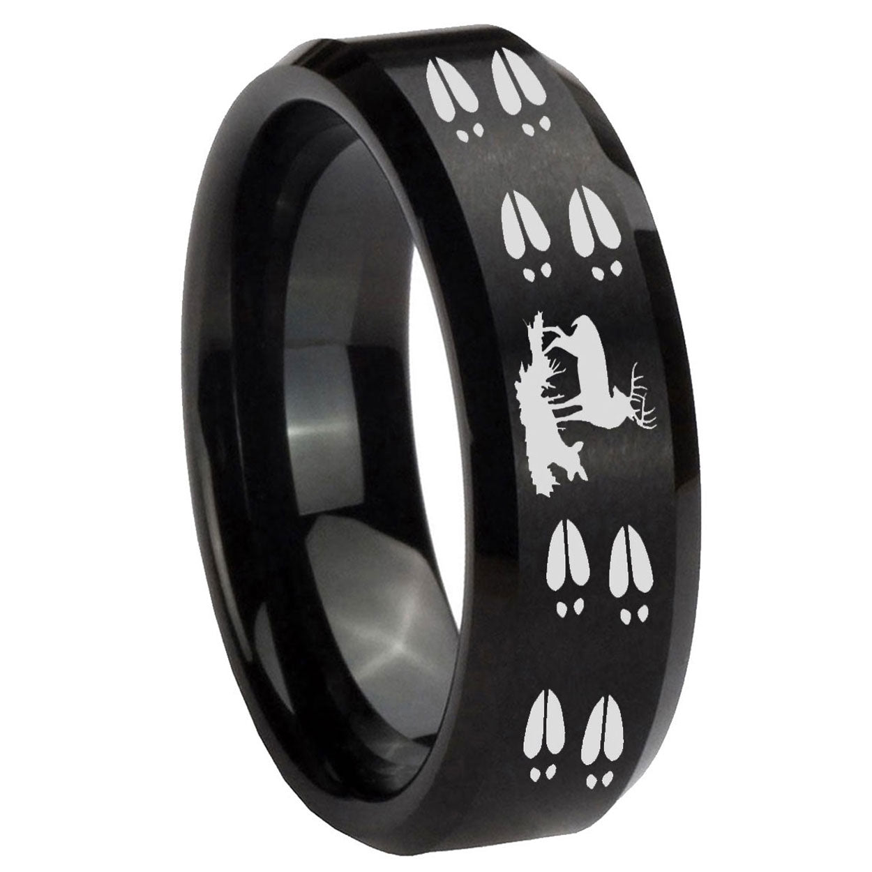 5, 8mm Deer Hunting Tracks Beveled Edges Brush Black Tungsten Men's Promise Rings