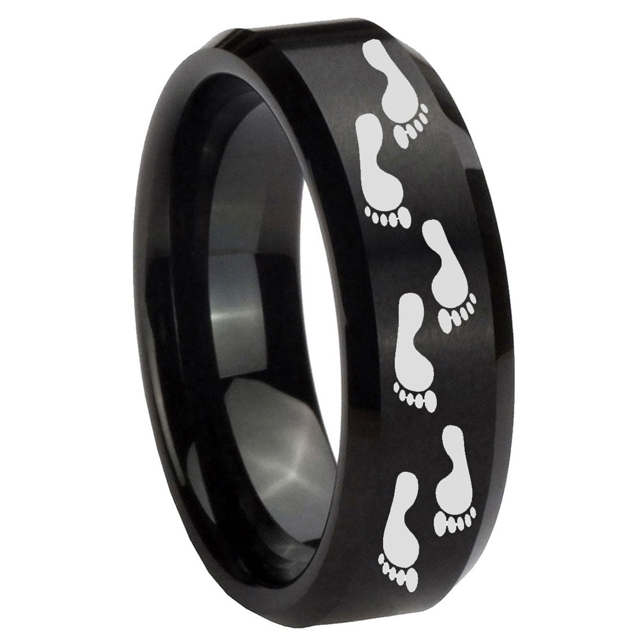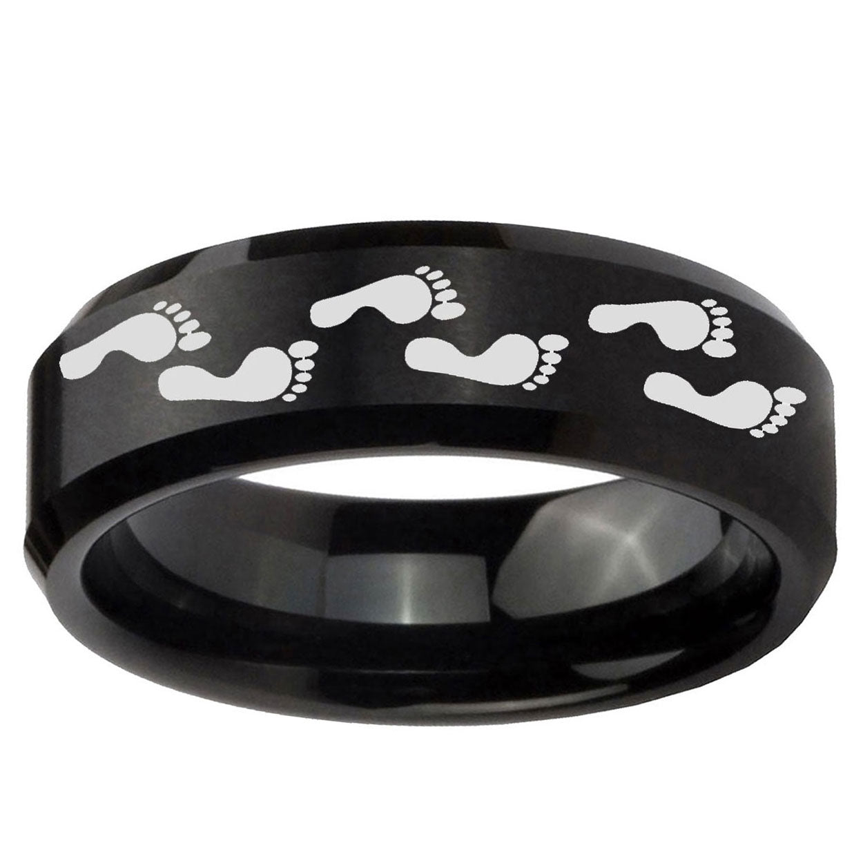 5, 8mm Foot Print Beveled Edges Brush Black Tungsten Carbide Mens Ring Personalized