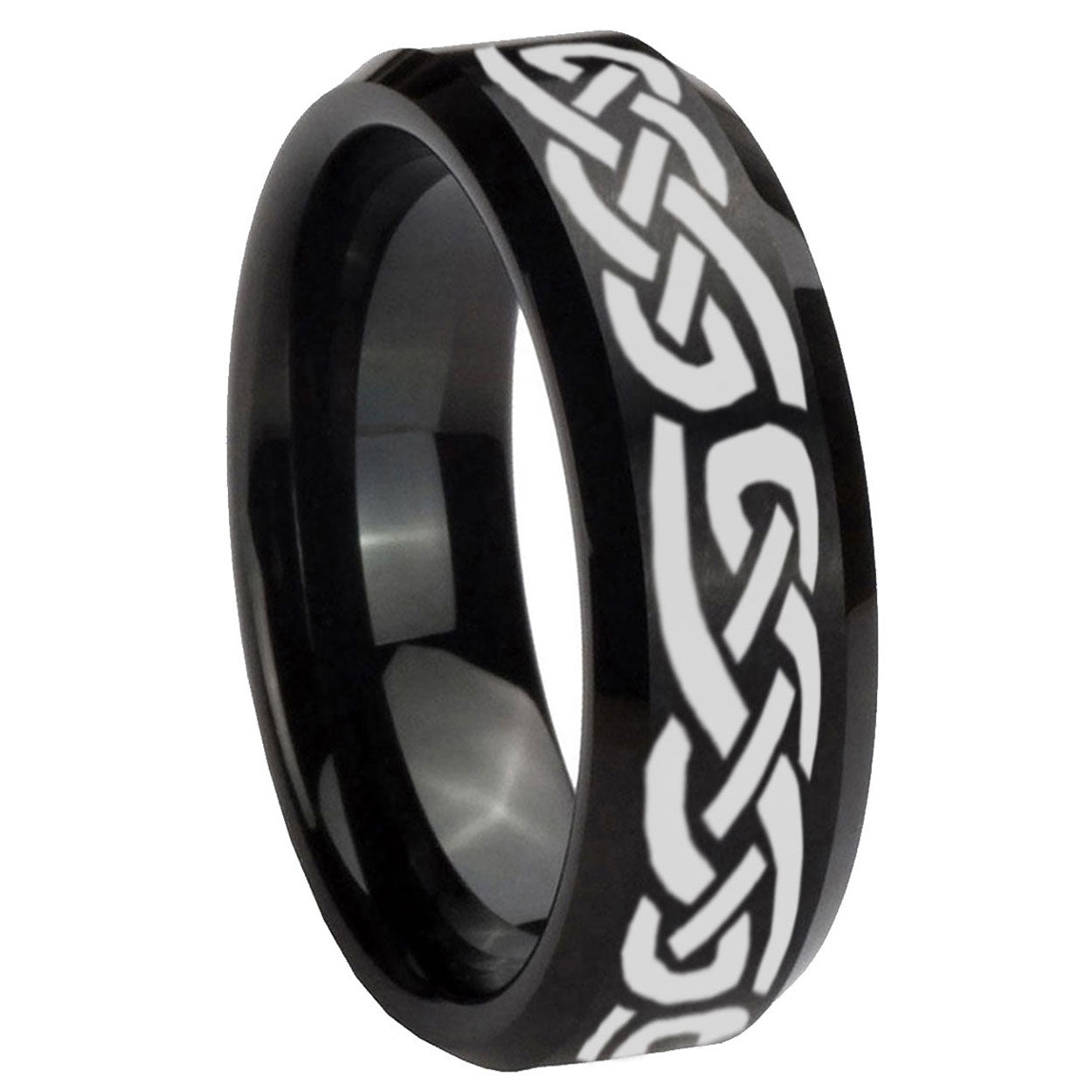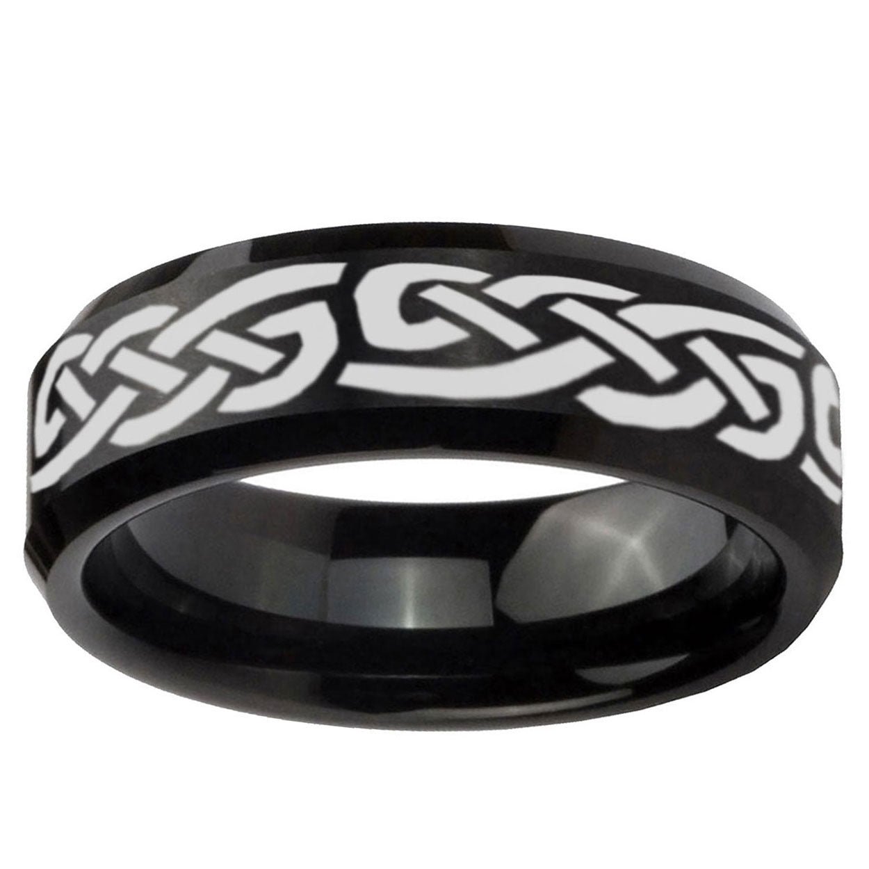 Intruding 5, 8mm Celtic Knot Infinity Love Beveled Edges Brush Black Tungsten Mens Engagement Ring . Offer in both 5mm and 8mm band width brushed black plated finished from size 4 to 14