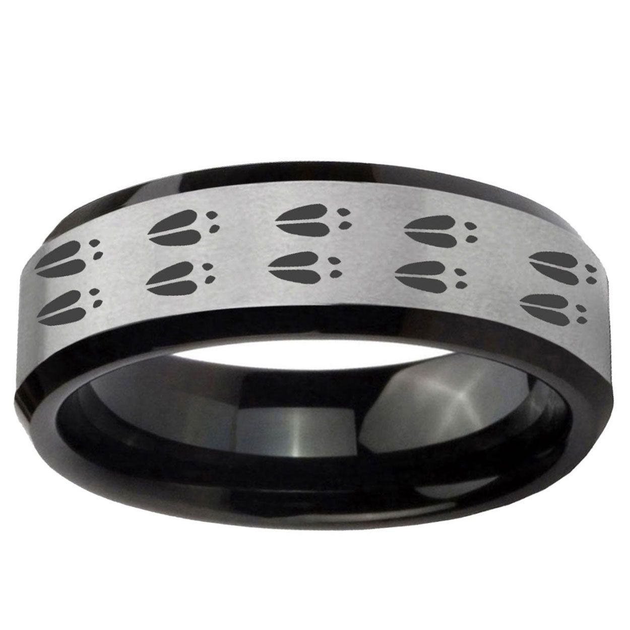 Intruding 5, 8mm Deer Tracks Beveled Edges Brush Black 2 Tone Tungsten Mens Engagement Band . Offer in both 5mm and 8mm band width brush black 2 tone finished from size 4 to 14