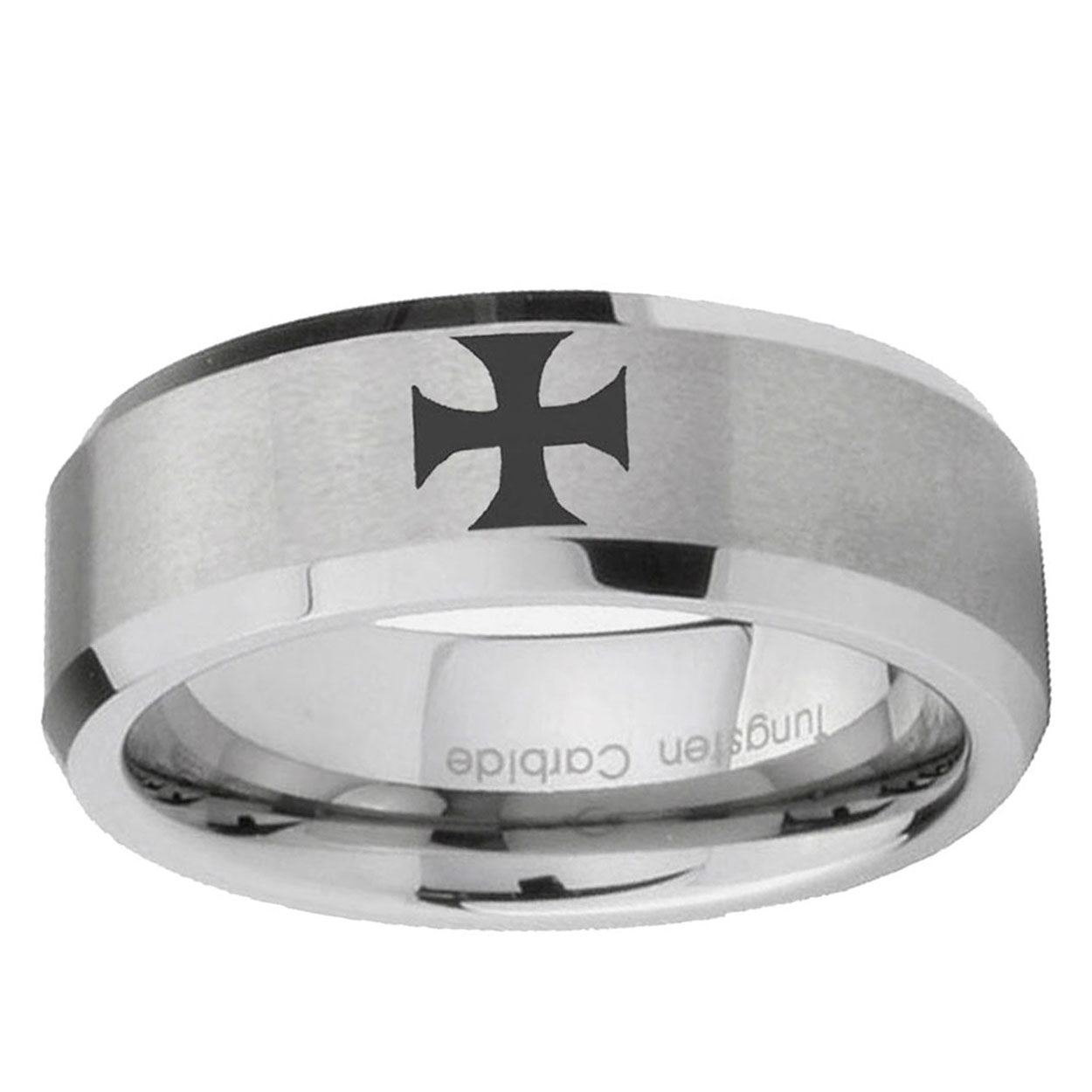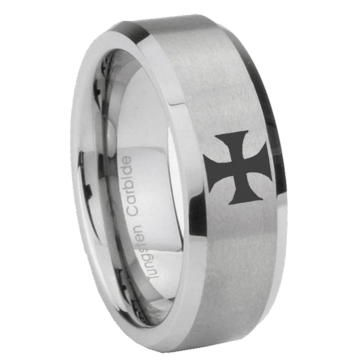 Introducing 6, 8mm Maltese Cross Beveled Edge Brushed Grey Tungsten Men's Engagement Band . Offer in both 6mm and 8mm band width brushed grey finished from size 5 to 14