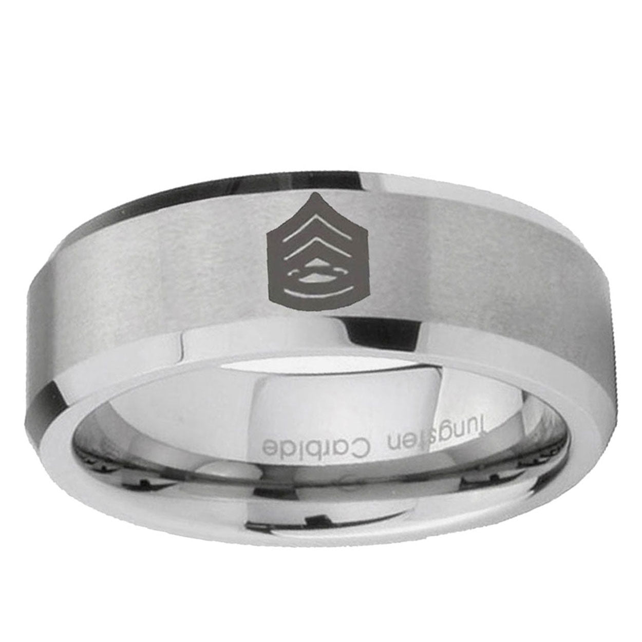 6, 8mm Army Sergeant Major Beveled Edge Brushed Grey Tungsten Mens Anniversary Ring