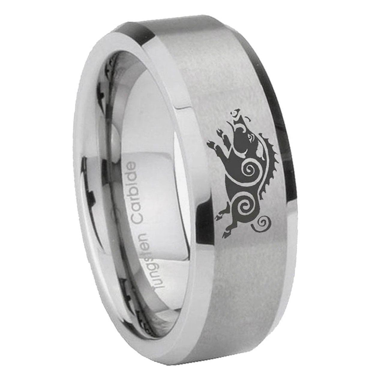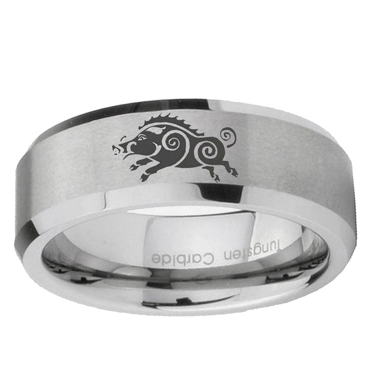 6, 8mm Wild Boar Beveled Edge Brushed Grey Tungsten Wedding Engagement Ring