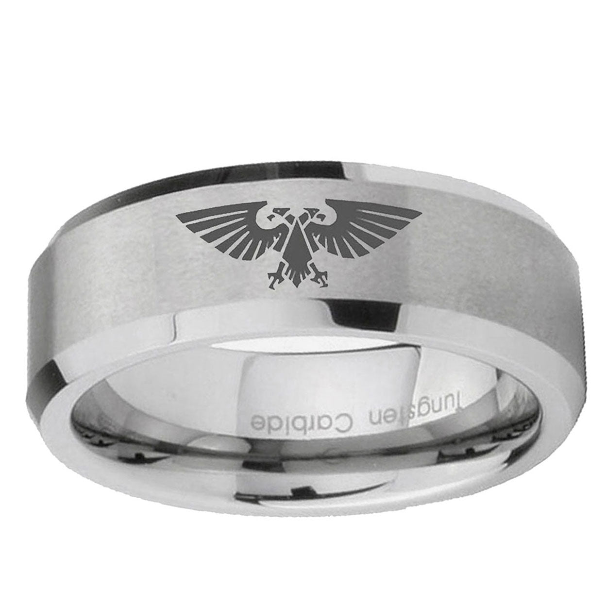 Introducing 6, 8mm Aquila Beveled Edge Brushed Grey Tungsten Engagement Ring . Offer in both 6mm and 8mm band width brushed grey finished from size 5 to 14