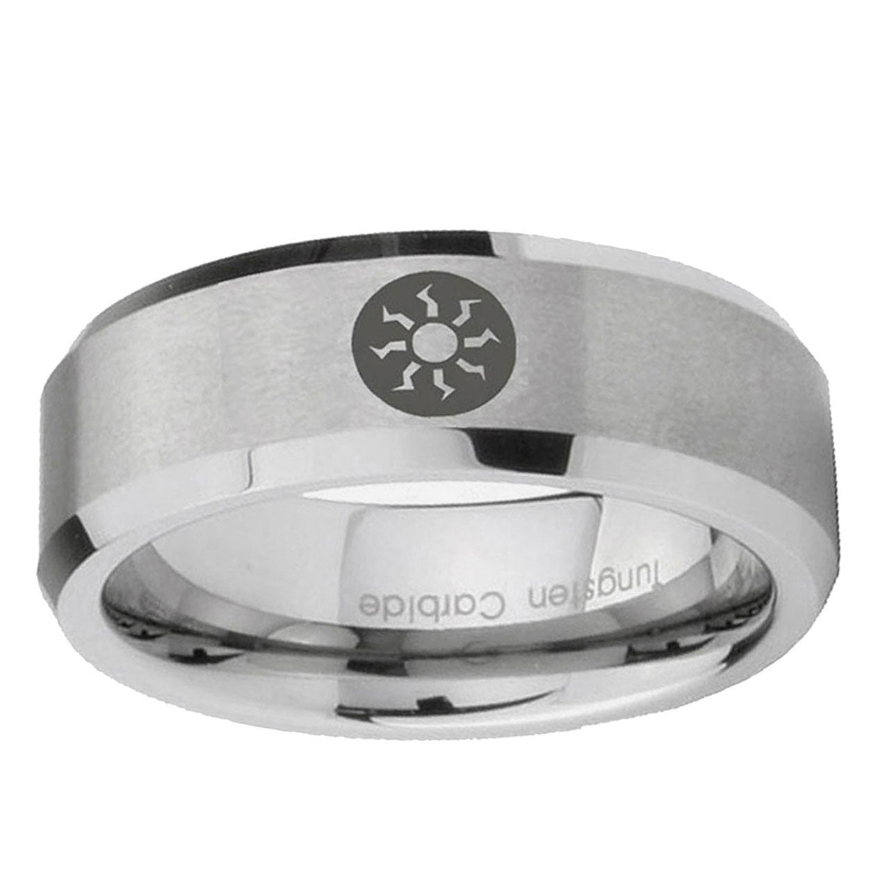 6, 8mm Magic The Gathering Beveled Edge Brushed Grey Tungsten Men's Promise Rings