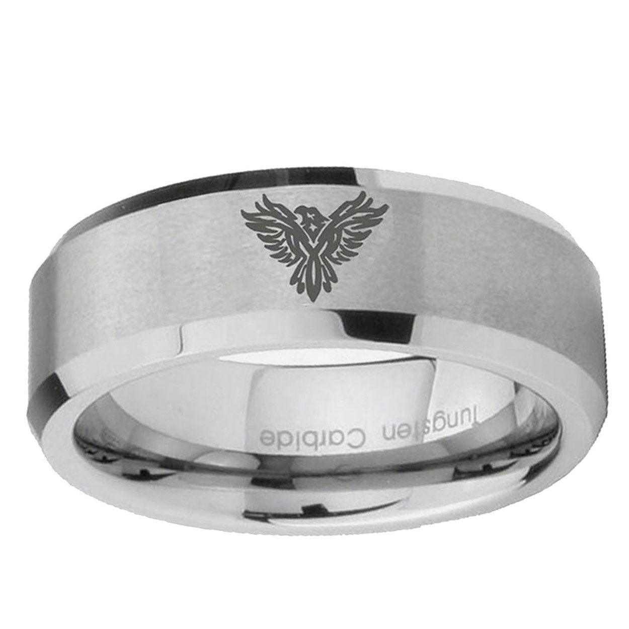 Introducing 6, 8mm Phoenix Beveled Edge Brushed Grey Tungsten Men's Engagement Band . Offer in both 6mm and 8mm band width brushed grey finished from size 5 to 14
