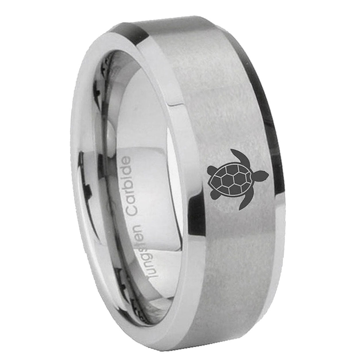 Introducing 6, 8mm Sea Turtle Beveled Edge Brushed Grey Men's Work Rings . Offer in both 6mm and 8mm band width brushed grey finished from size 5 to 14