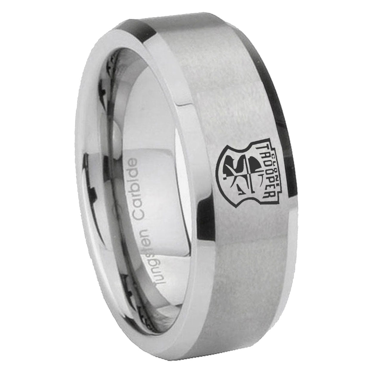 Intruding 6, 8mm Clone Trooper Beveled Edges Brushed Gray Tungsten Mens Wedding Band . Offer in both 6mm and 8mm band width polished Brushed Gray finished from size 5 to 14