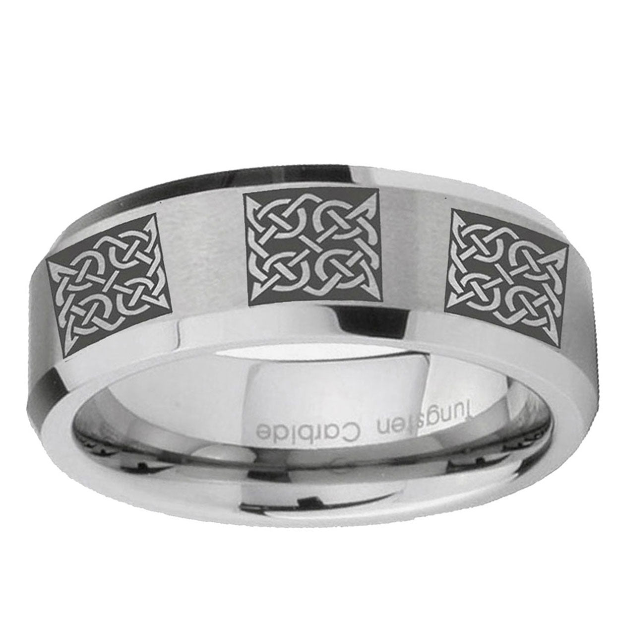 6, 8mm Multiple Celtic Bevel Edge Brushed Gray Tungsten Wedding Engraving Ring